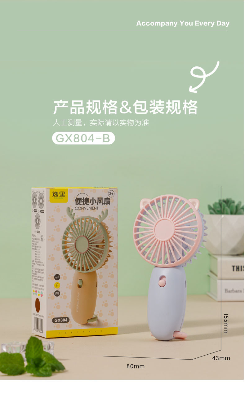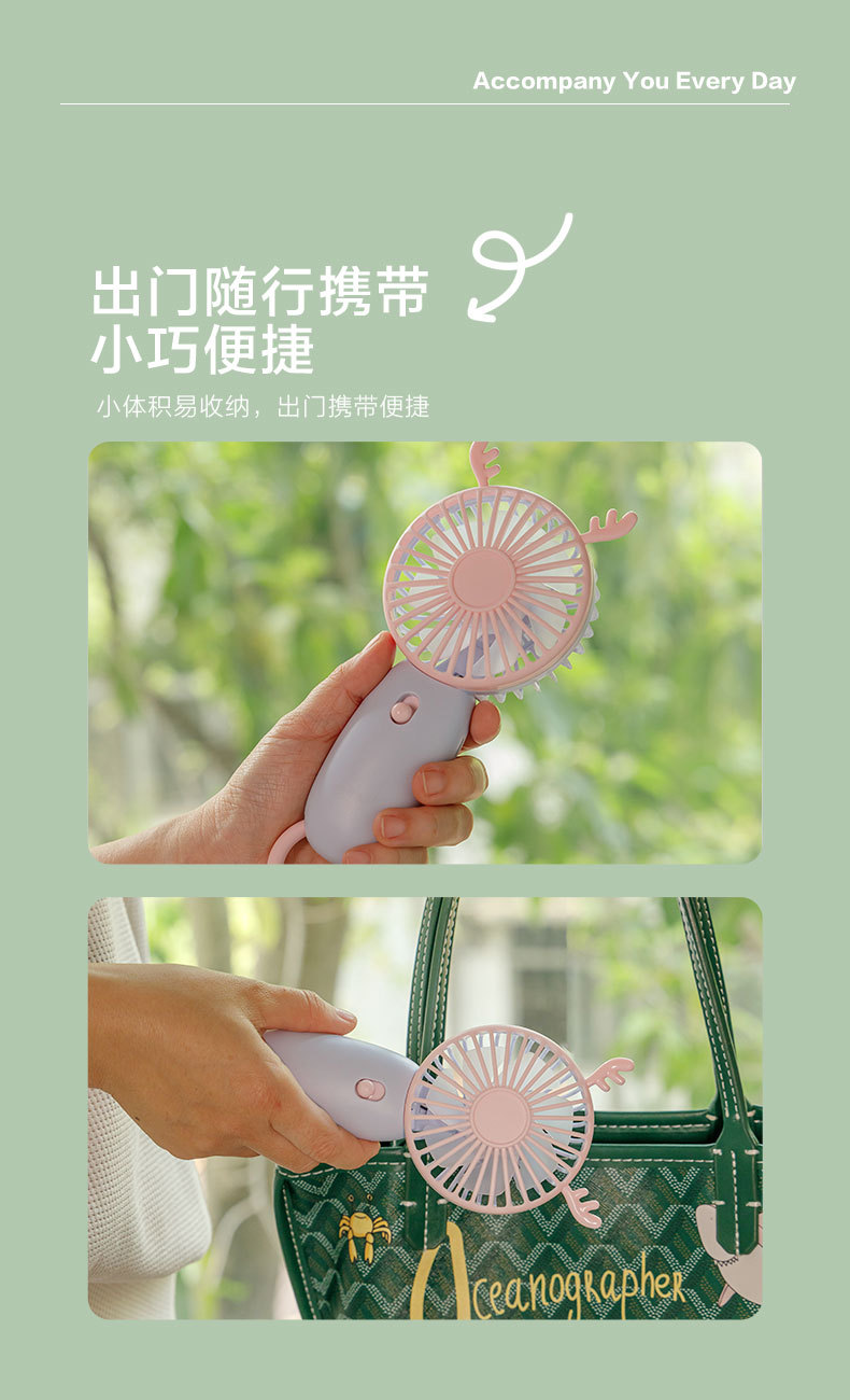 萌趣动物角便携式小风扇迷你挂环随身小型小风扇UBS可充电小风扇