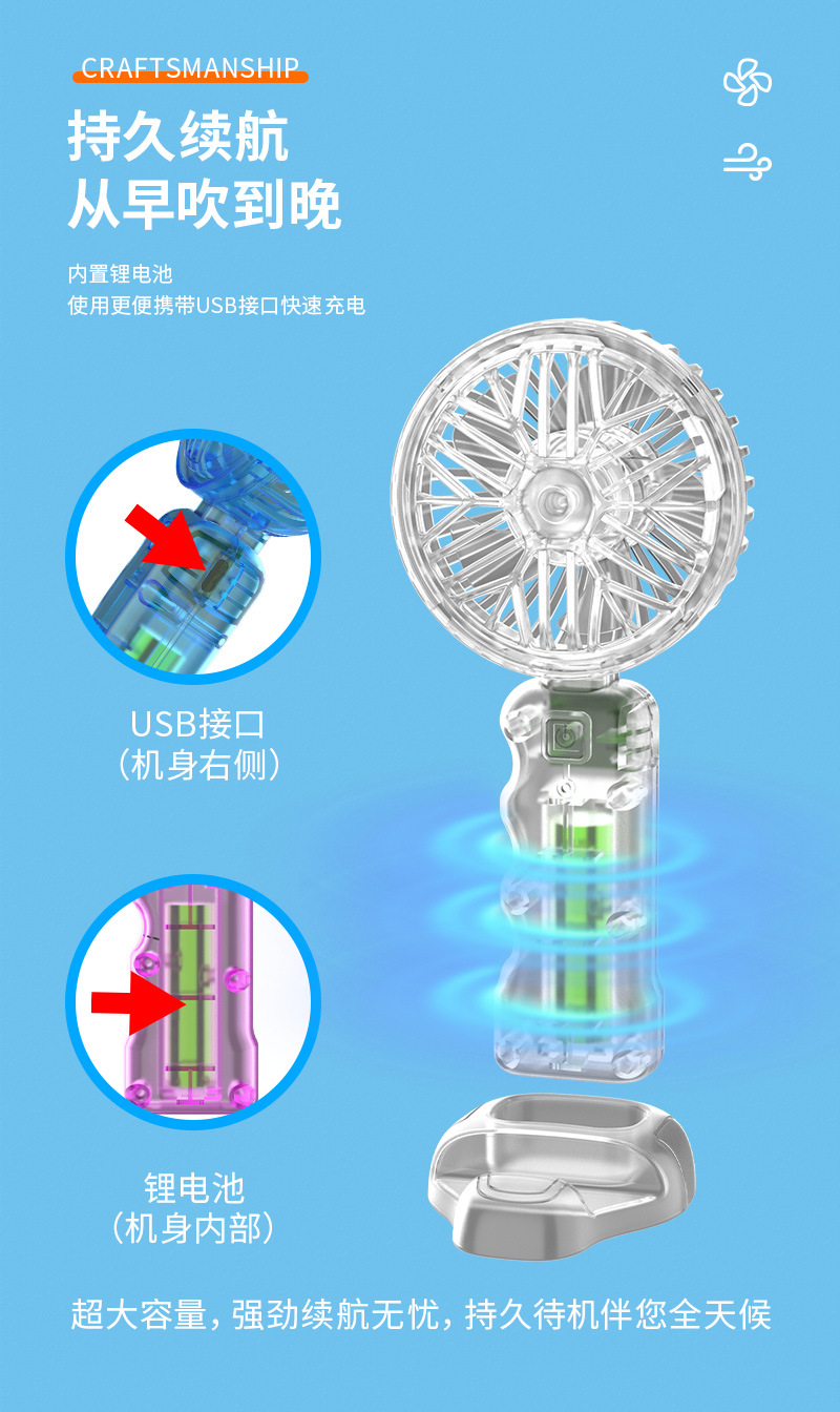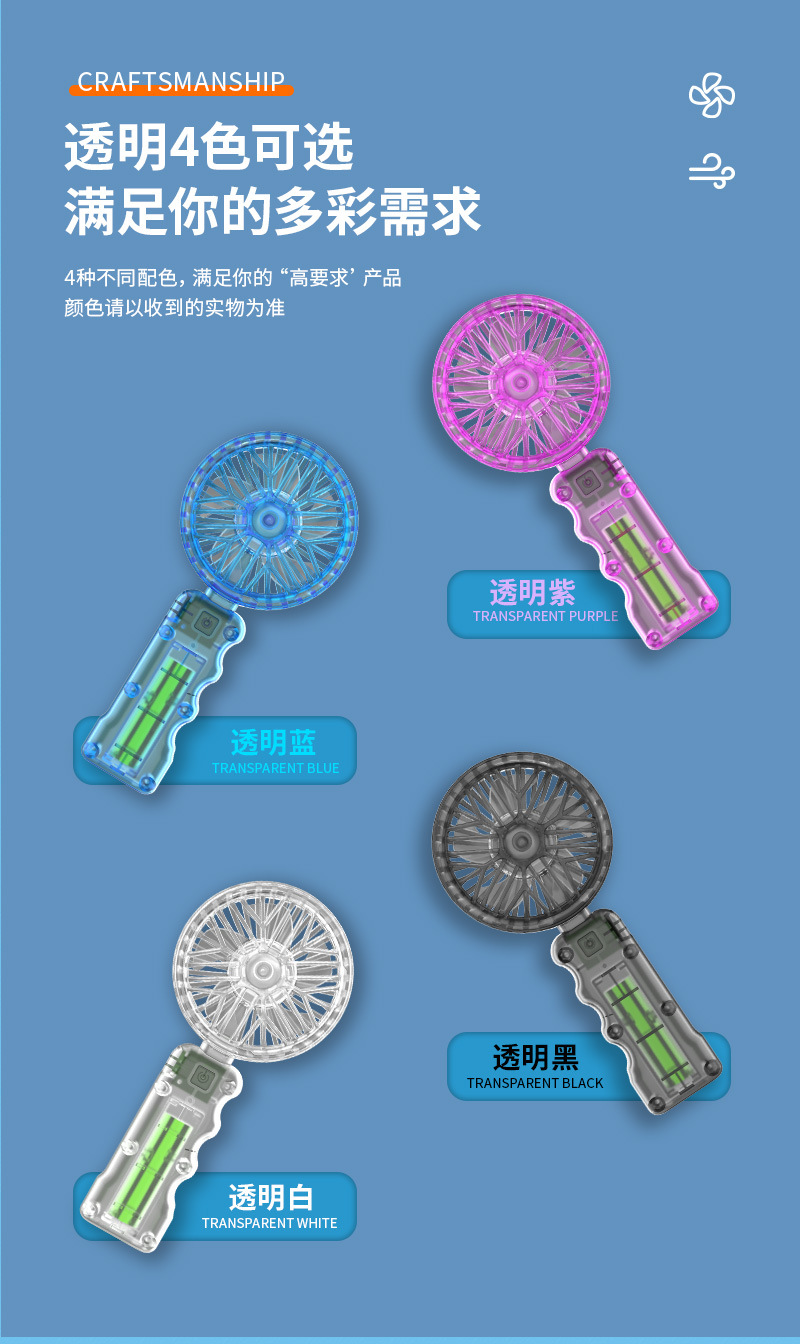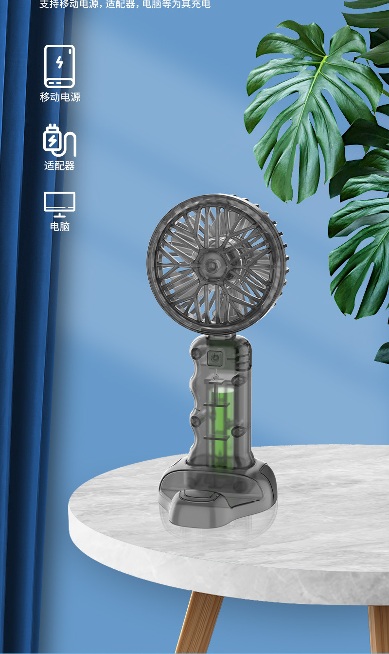 2025新款跨境透明机甲风扇3档户外便携风扇带底座小风扇学生奖品