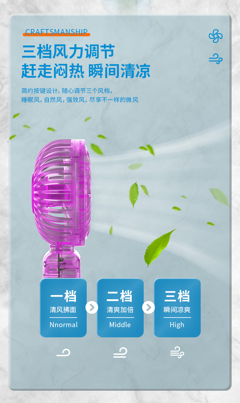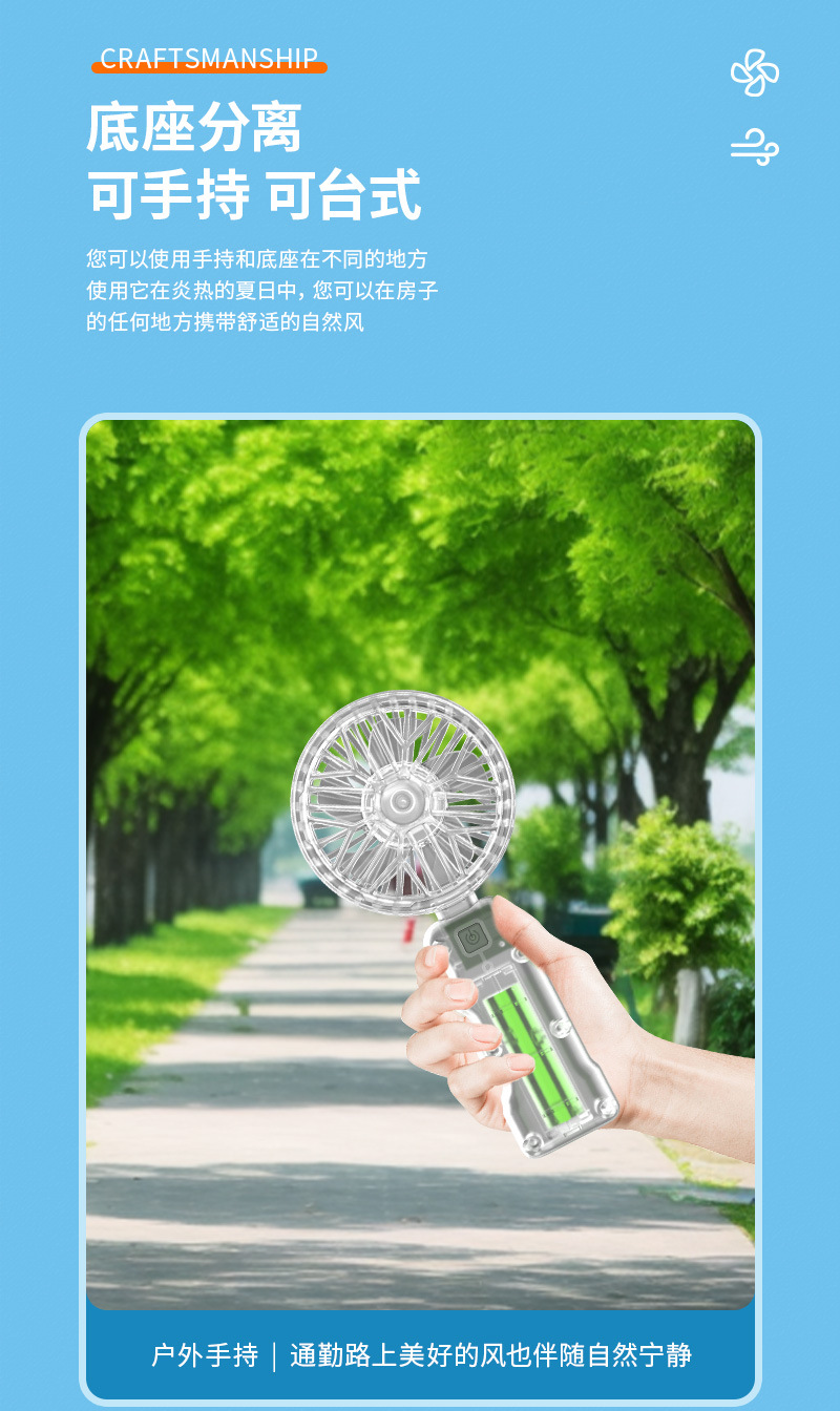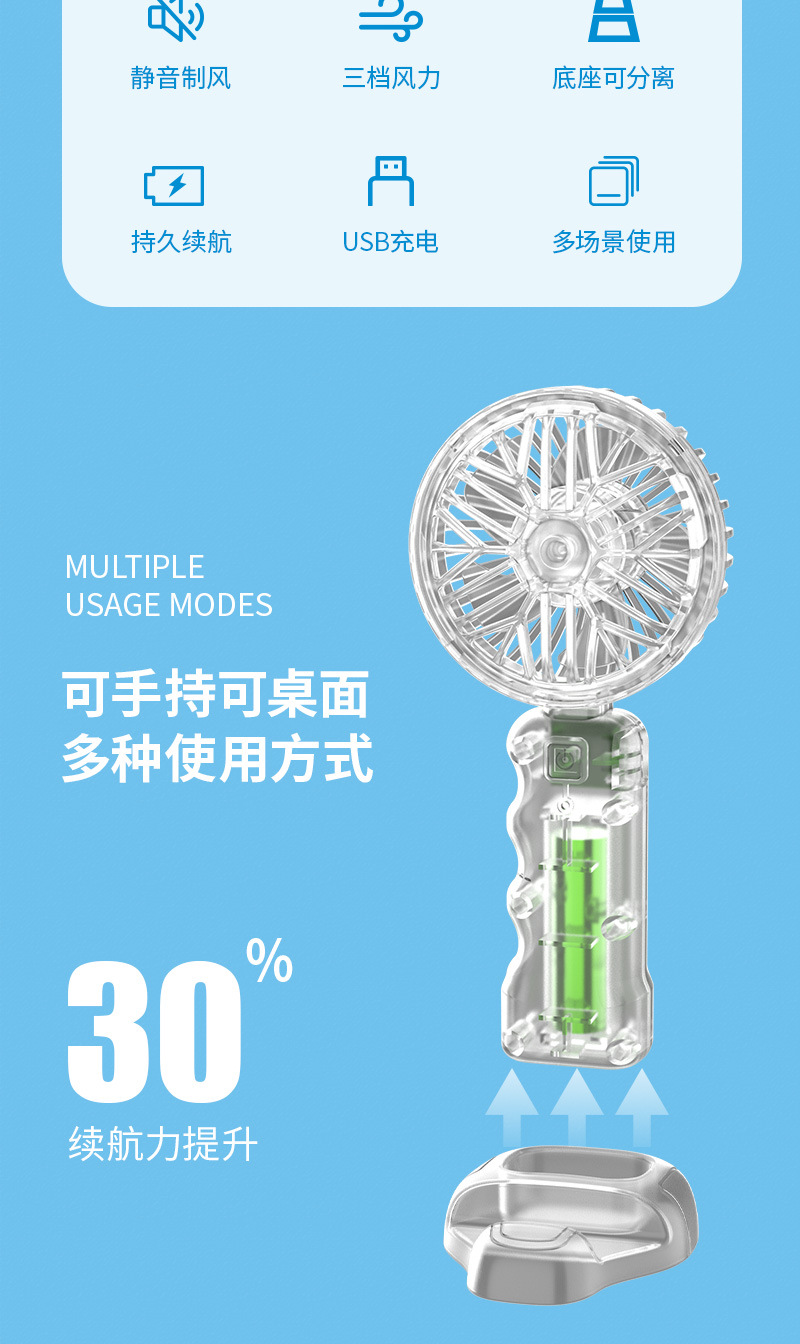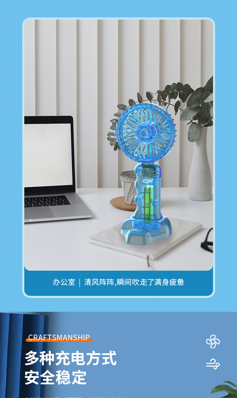 2025新款跨境透明机甲风扇3档户外便携风扇带底座小风扇学生奖品