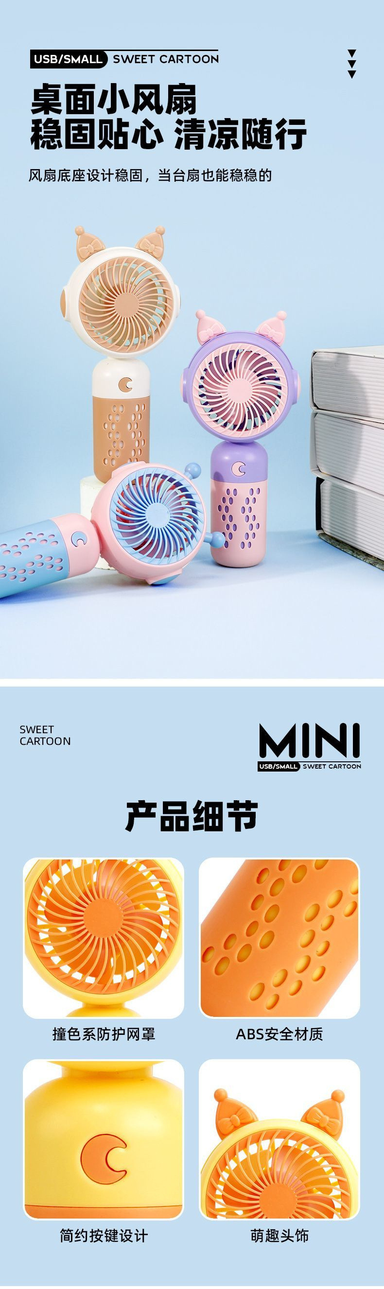 手持小风扇便携式随身迷你静音办公室桌上学生宿舍桌面usb充电款
