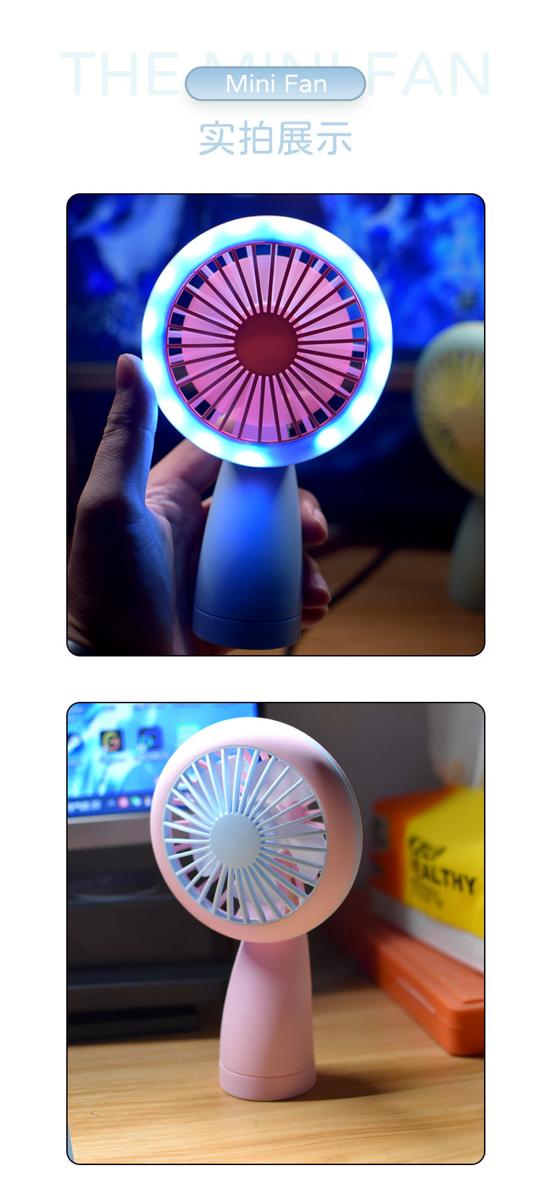 跨境小清新迷你风扇带灯光办公室桌面usb充电迷你便携手持小风扇