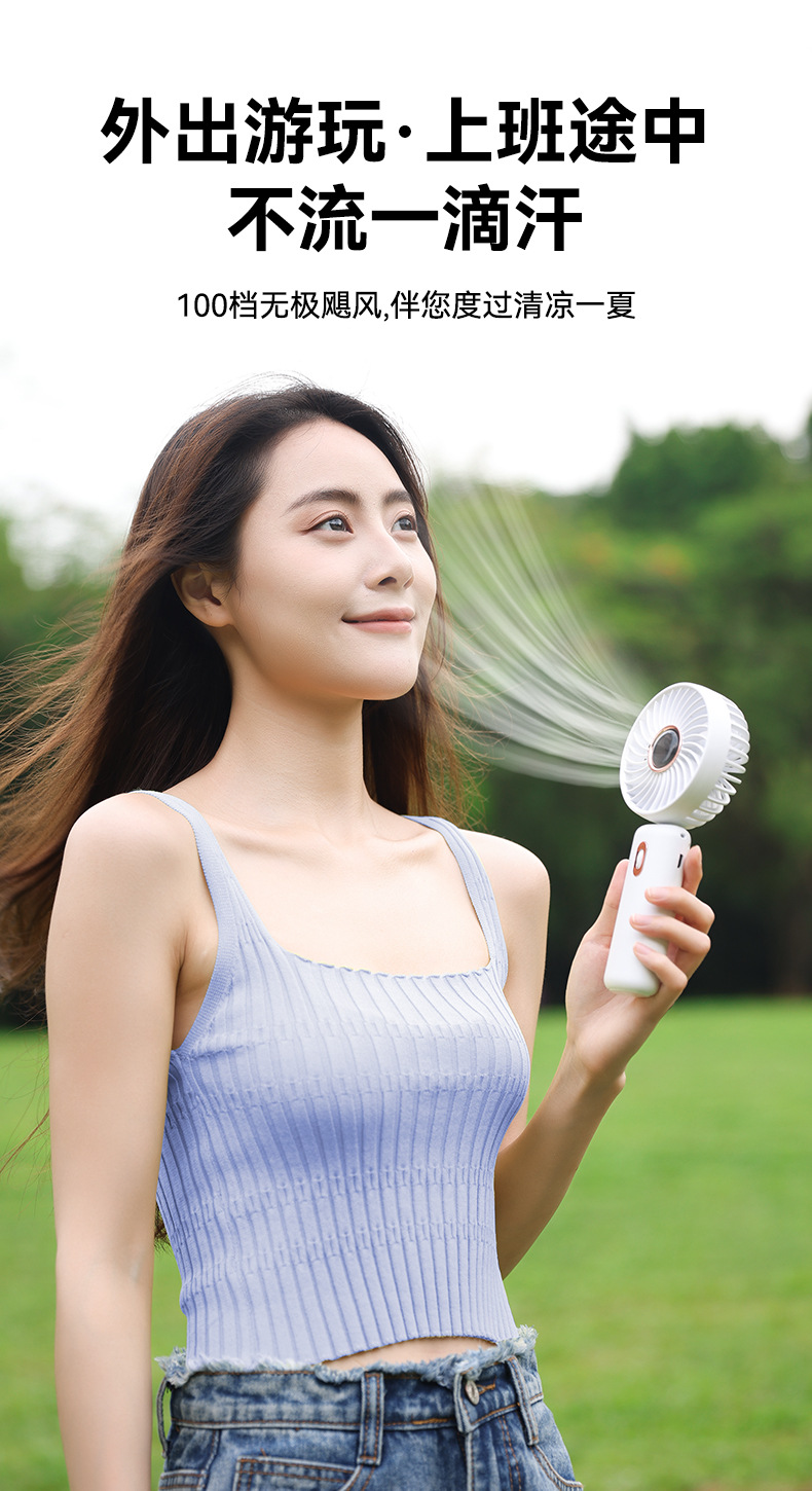 2024新款手持风扇 USB无极调速100档便携式USB充电强风力电风扇