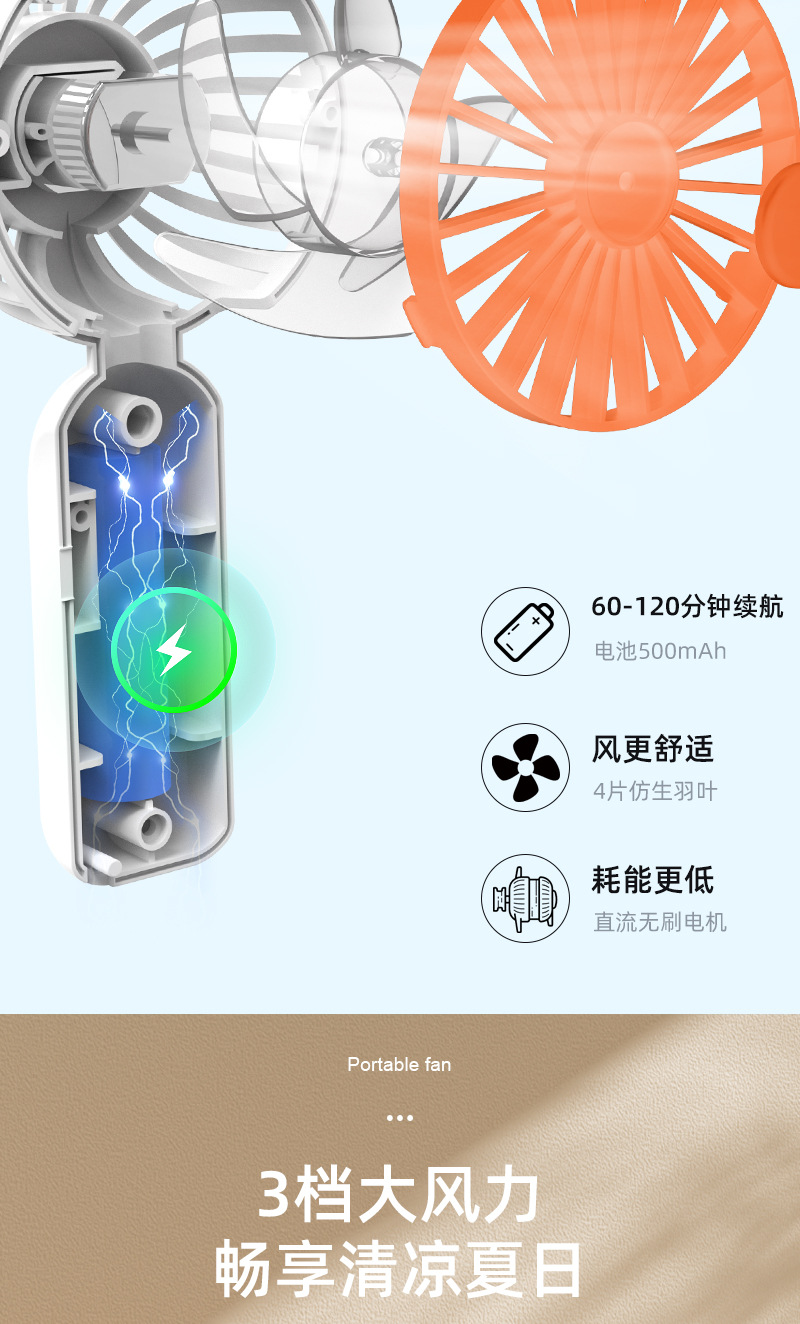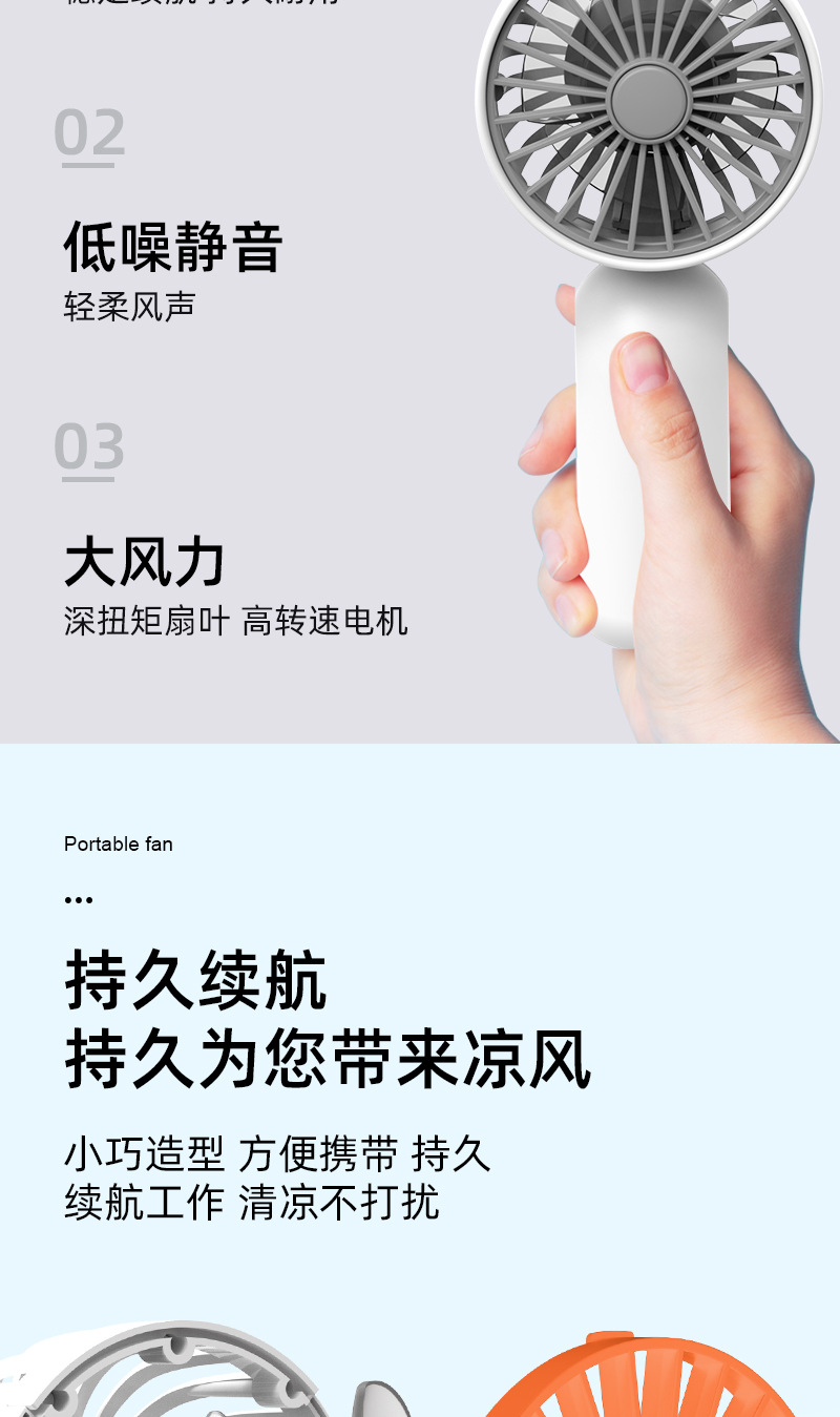 跨境迷你手持小风扇便携式大风力usb充电静音风扇办公室礼品批发