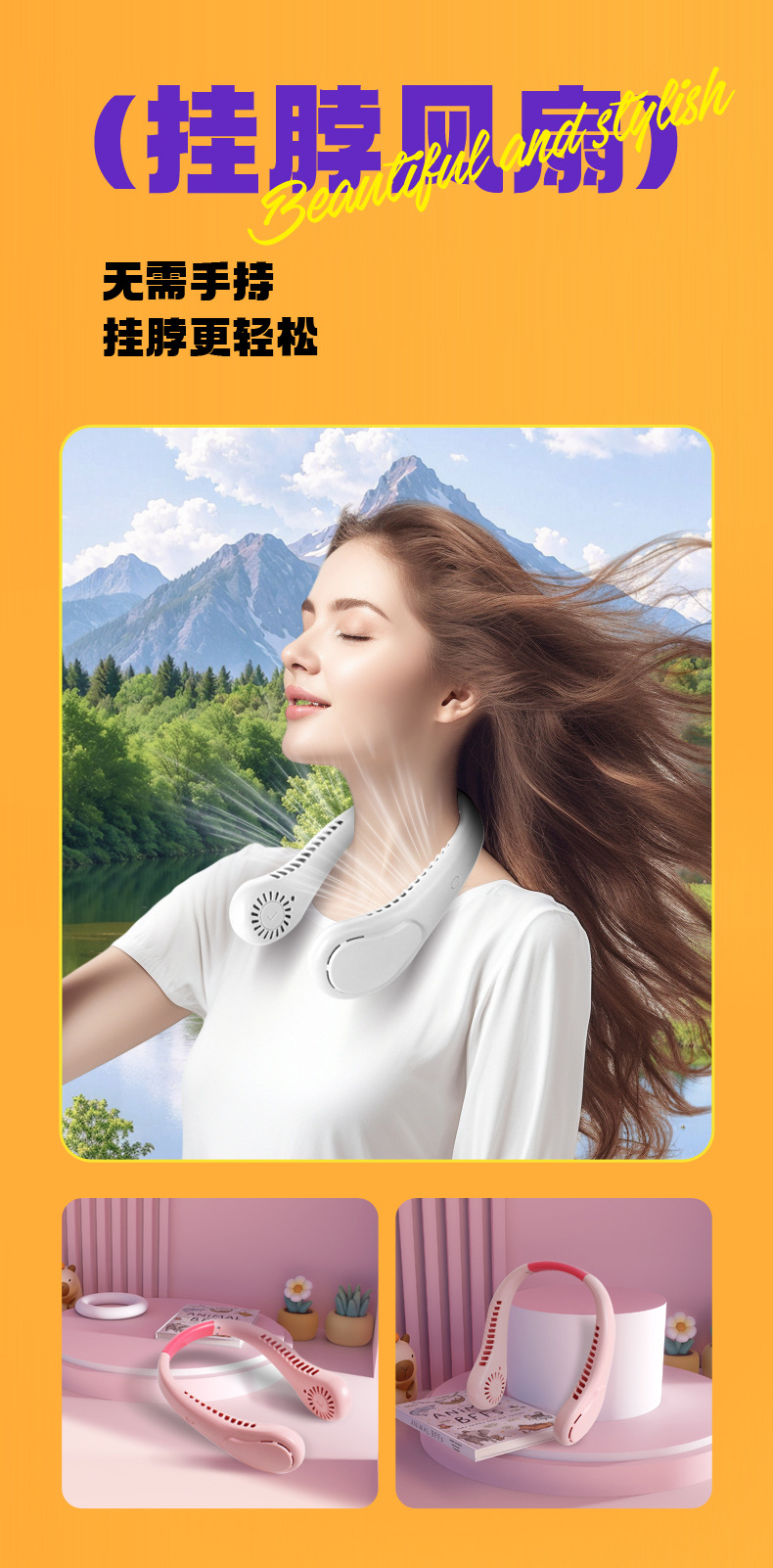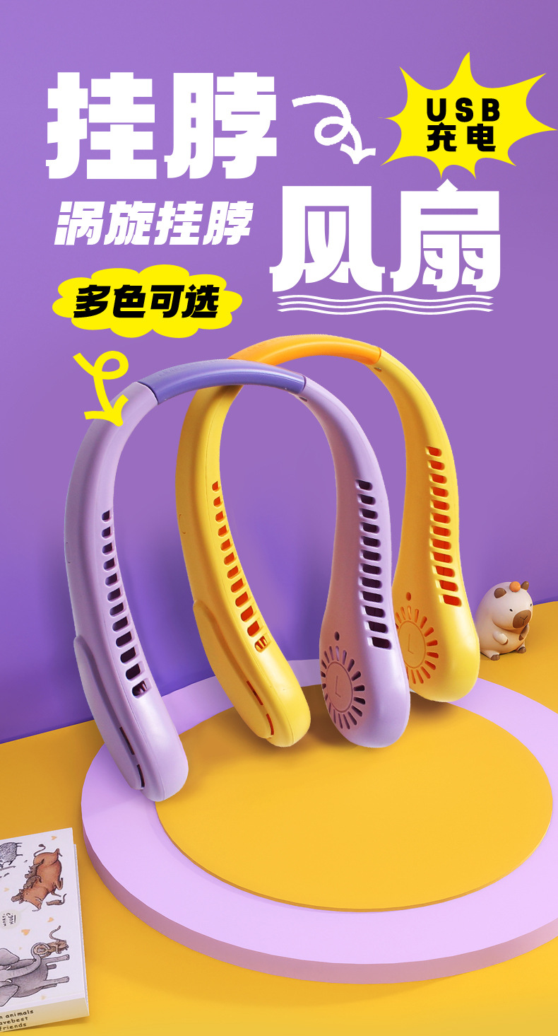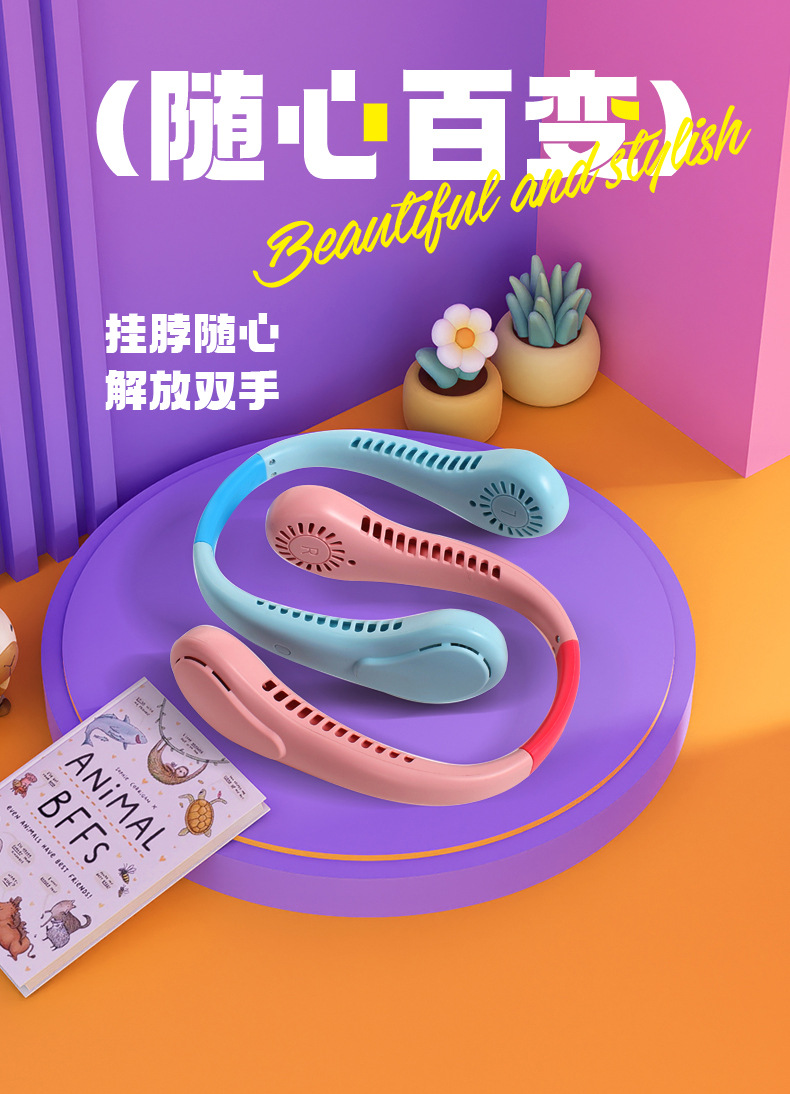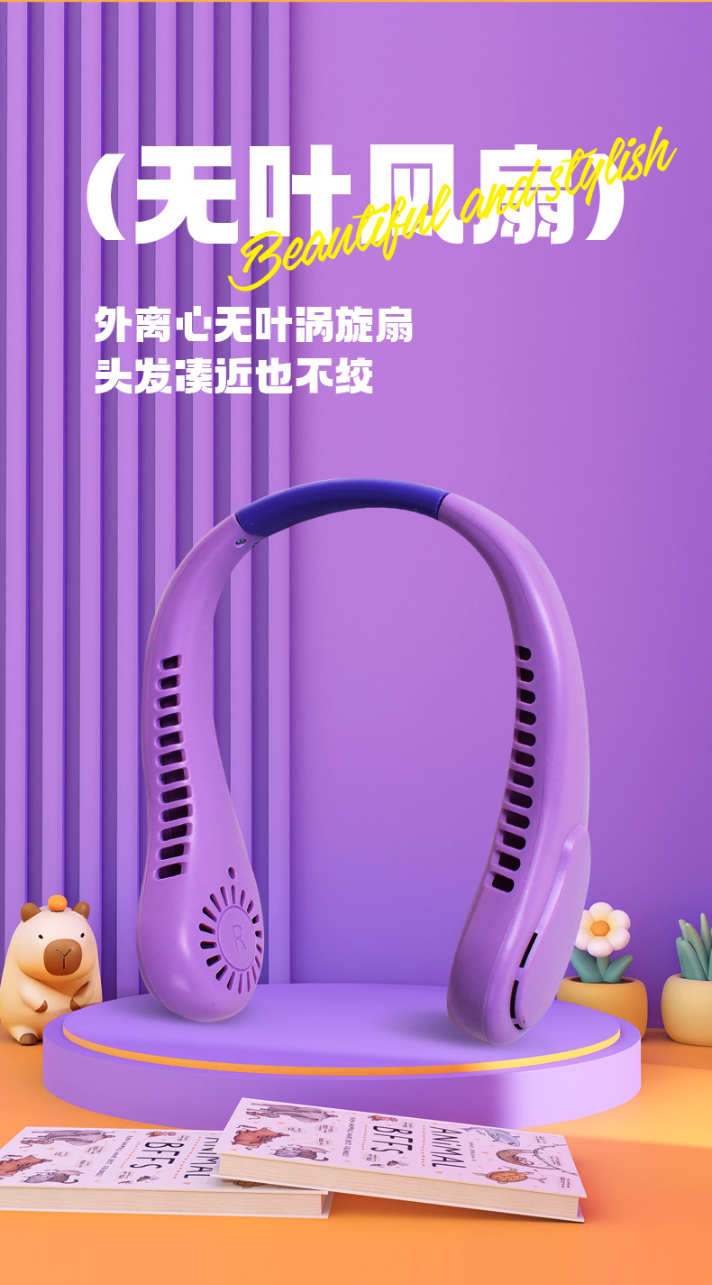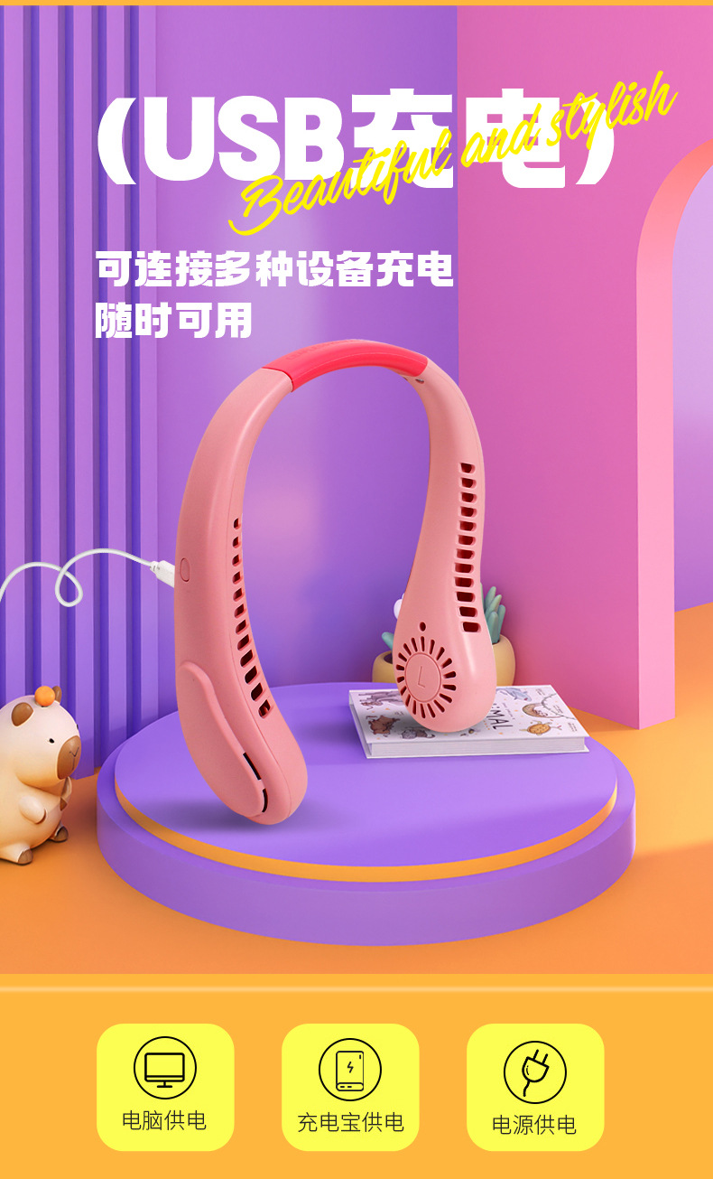 跨境新款挂脖风扇usb充电小风扇便携式迷你涡轮无叶风扇批发定制