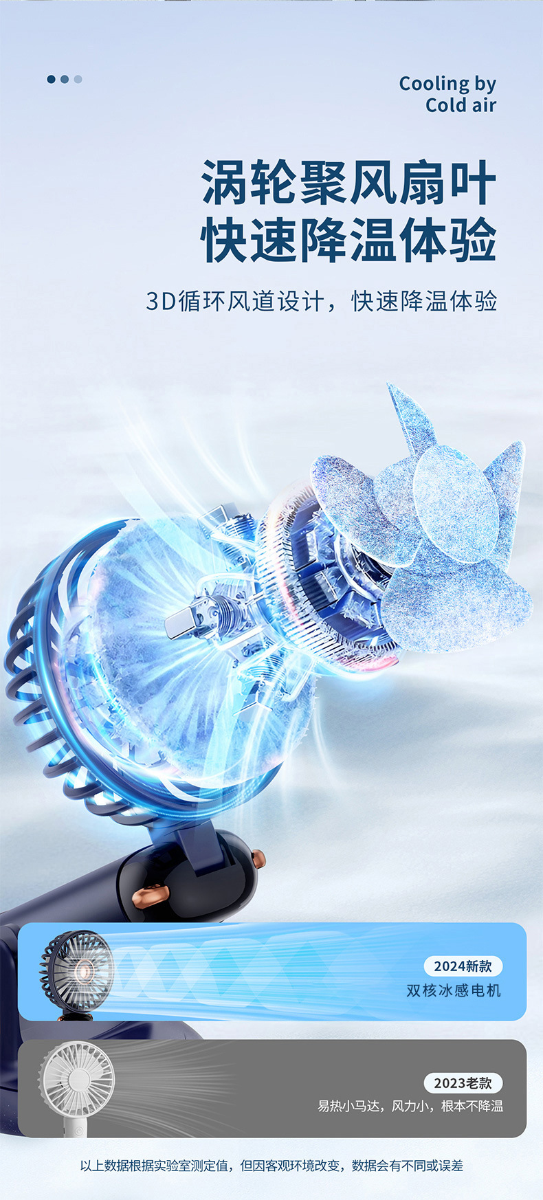 2025新款万能旋转手持风扇迷你桌面小风扇粘贴式挂墙倒立挂脖风扇