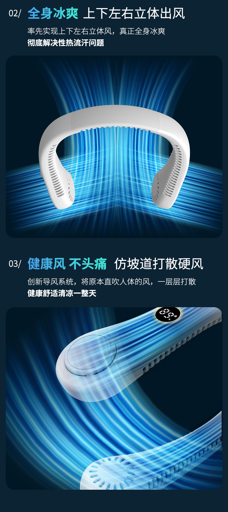 跨境挂脖风扇usb充电小风扇静音懒人便携式迷你涡轮无叶挂脖风扇