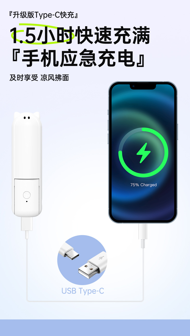 手持小风扇充电款长续航迷你小型风扇户外静音便携折叠手拿风扇