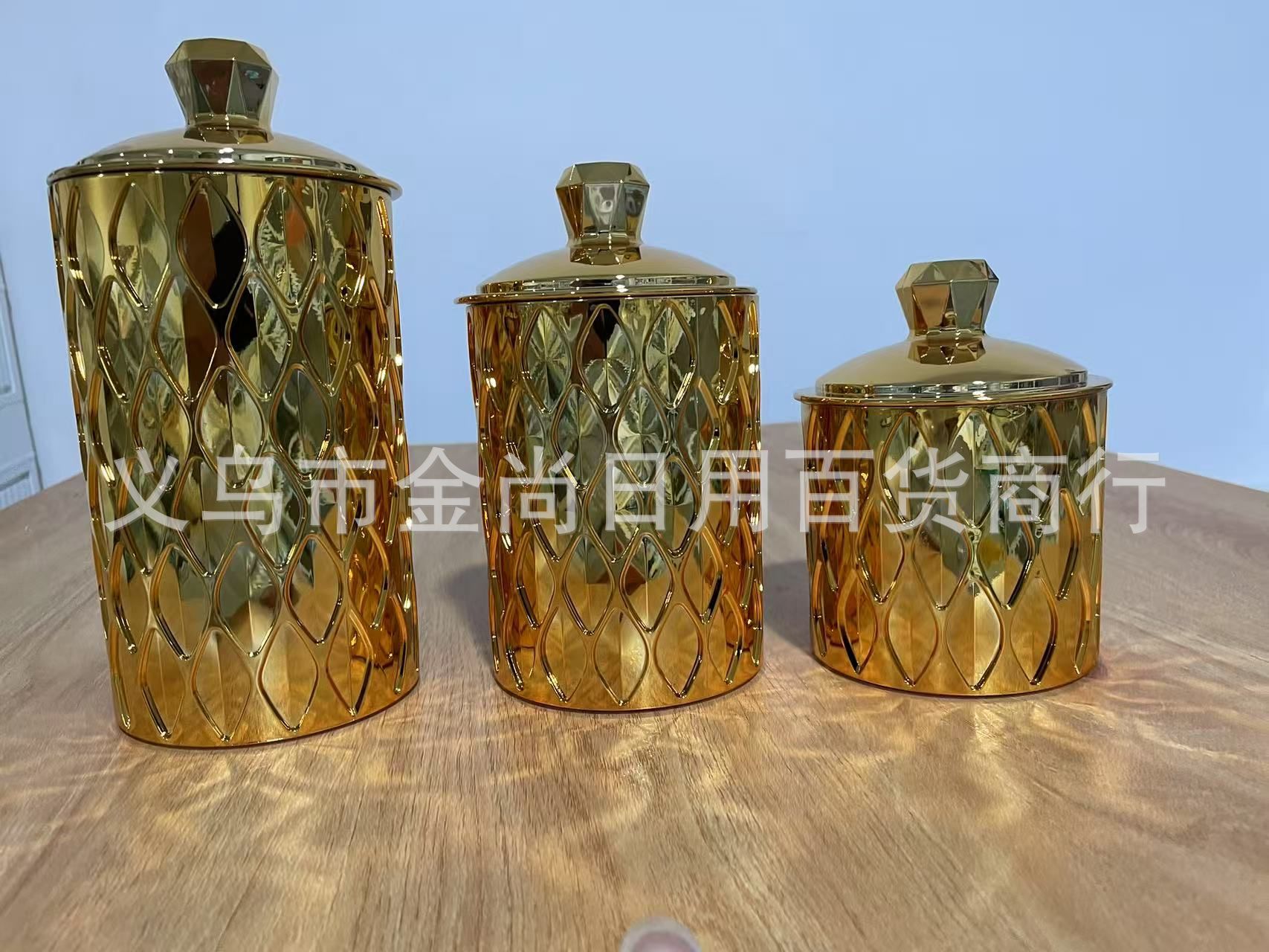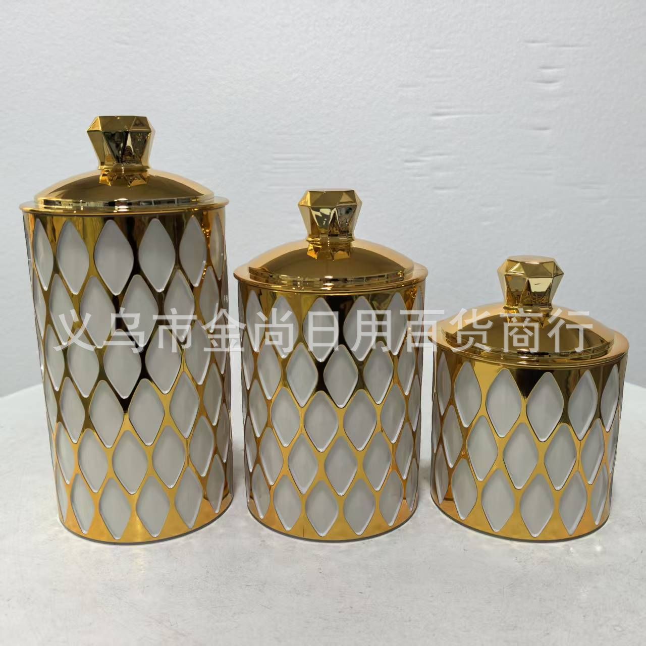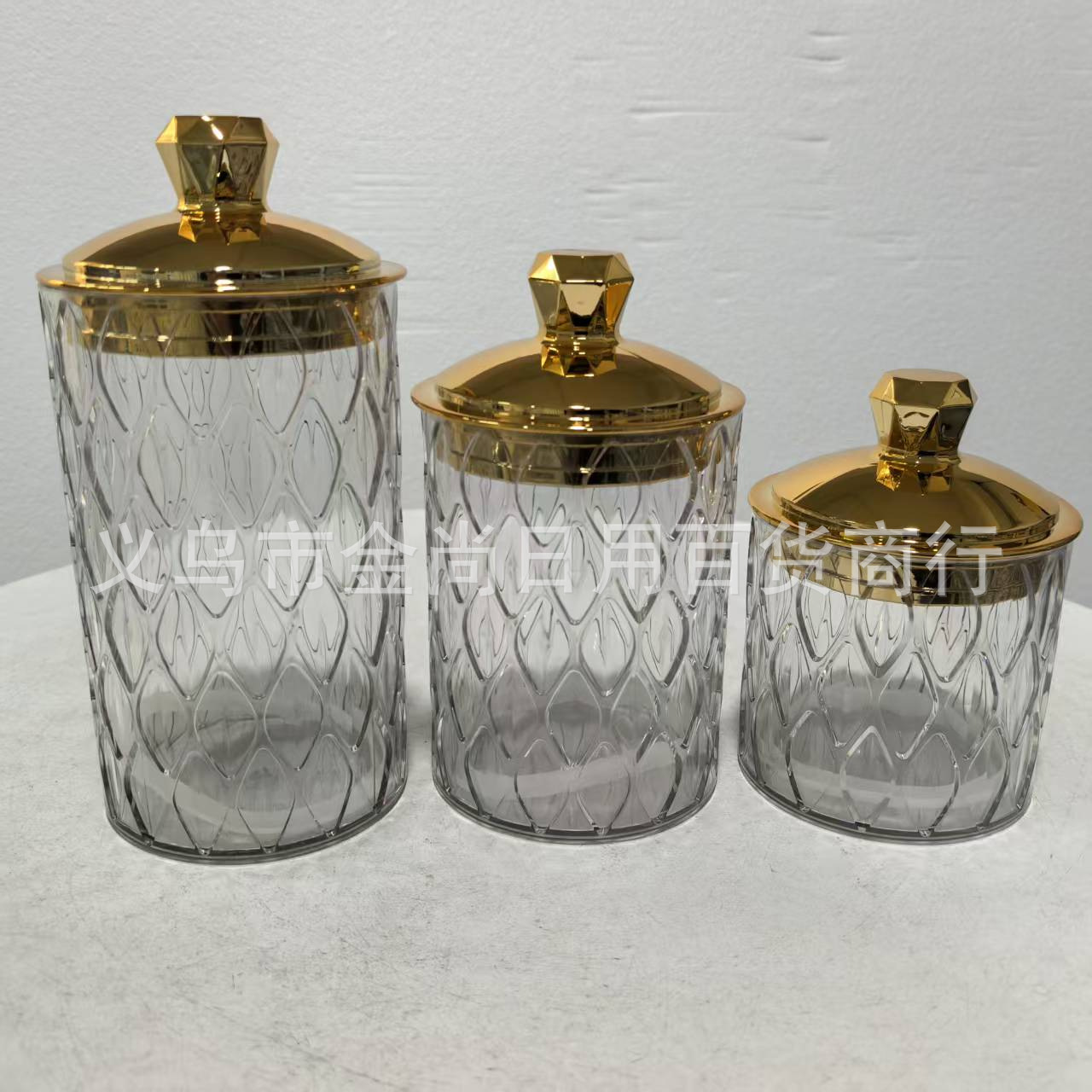 新款烫金密封罐电镀密封罐厨房储物罐糖果罐带盖防潮密封金色电镀
