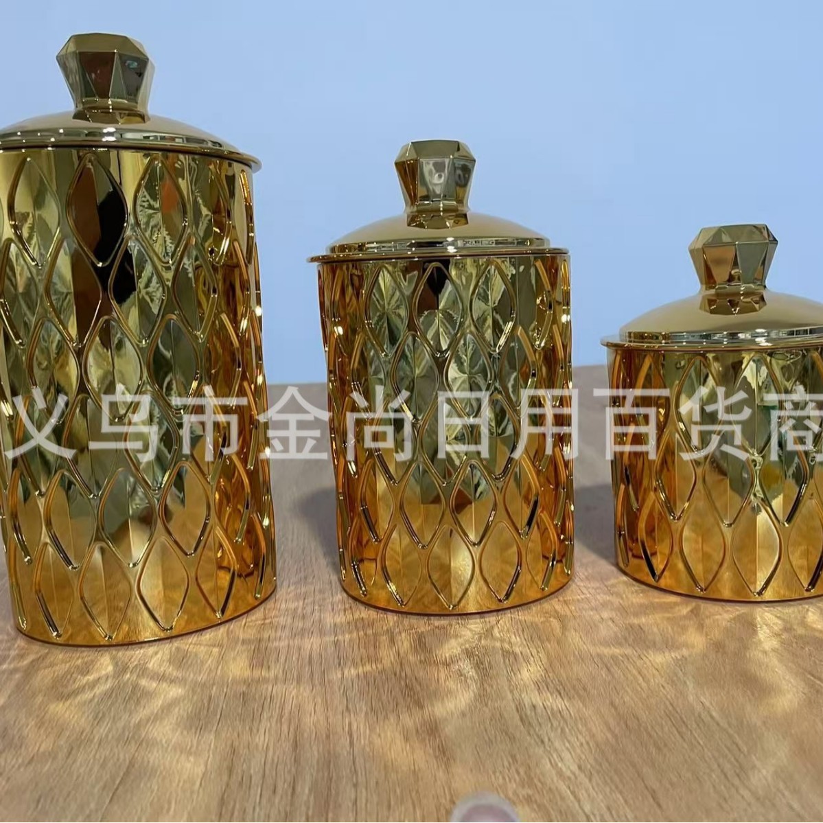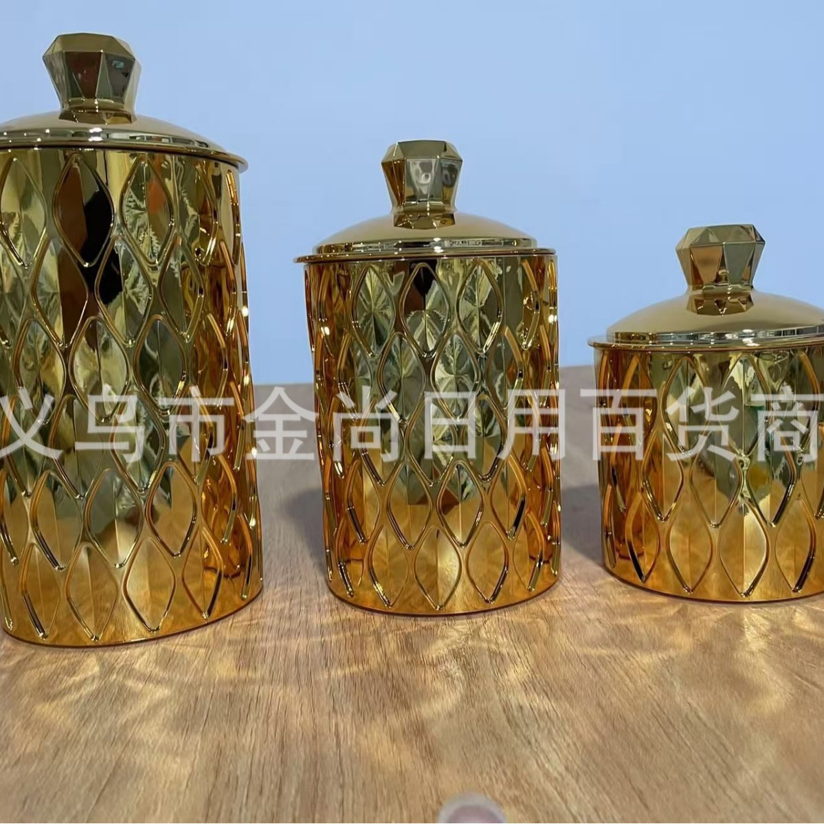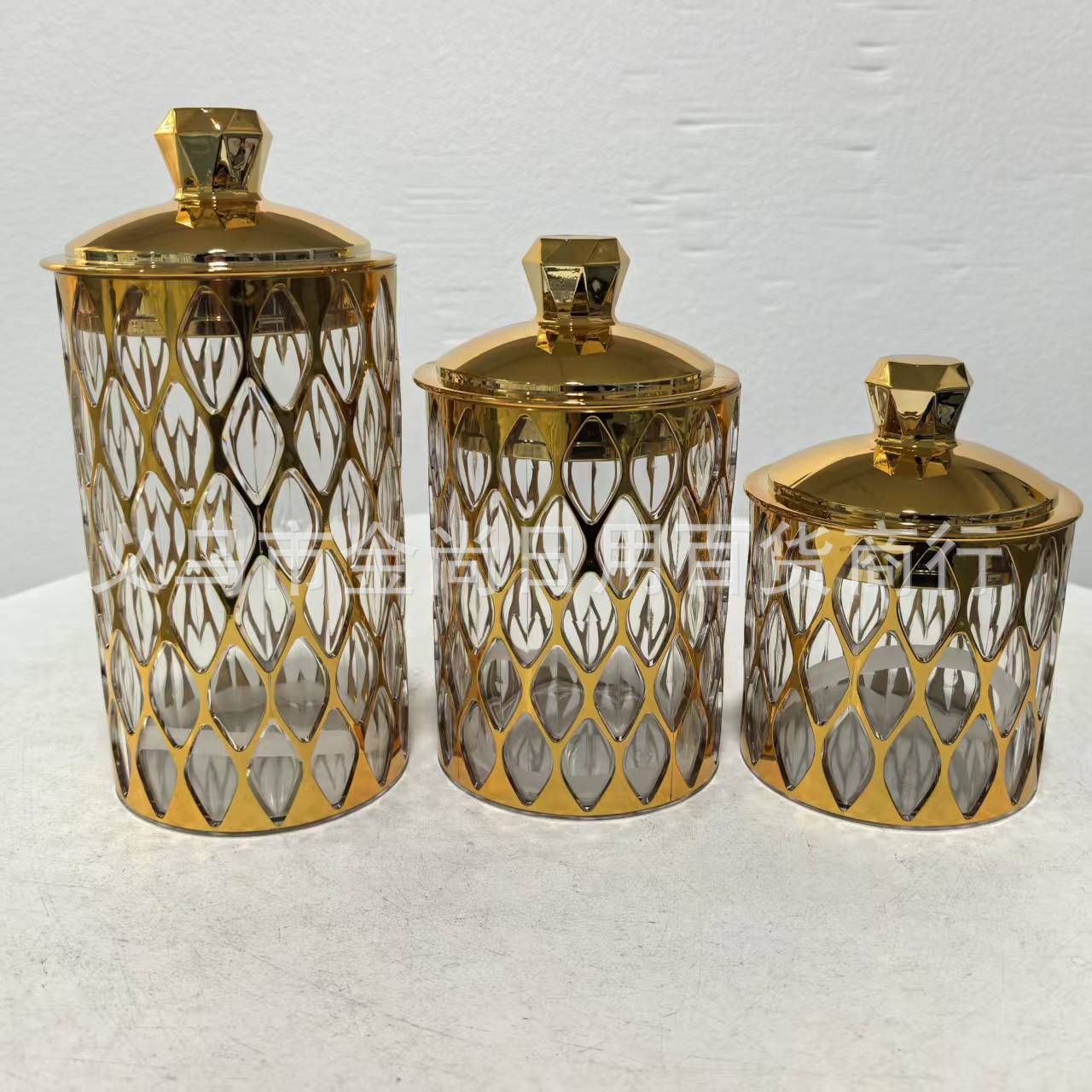 新款烫金密封罐电镀密封罐厨房储物罐糖果罐带盖防潮密封金色电镀