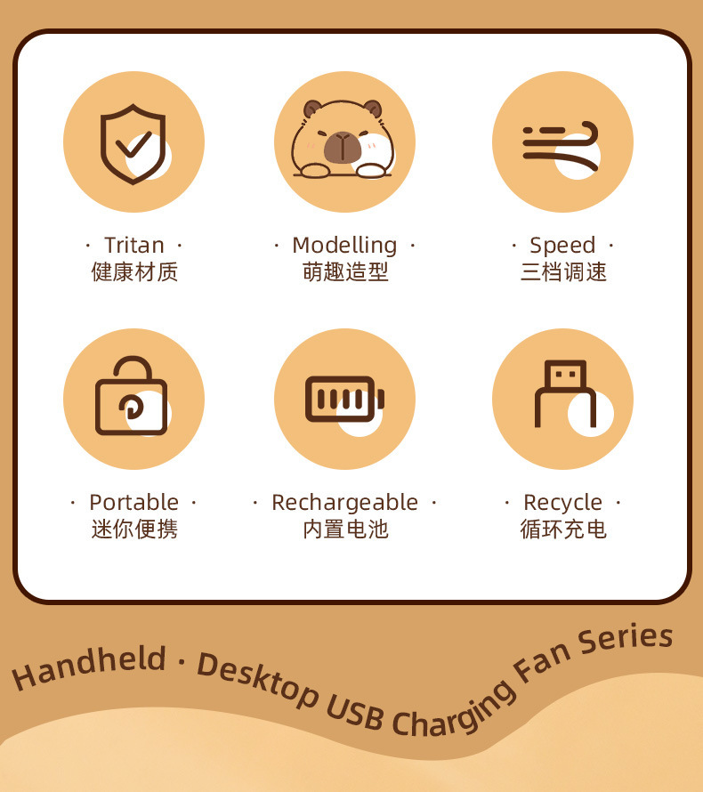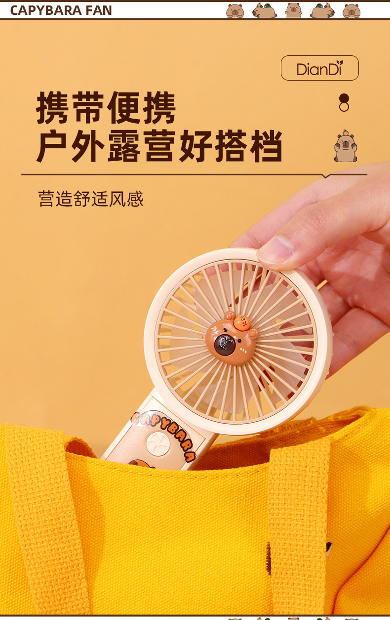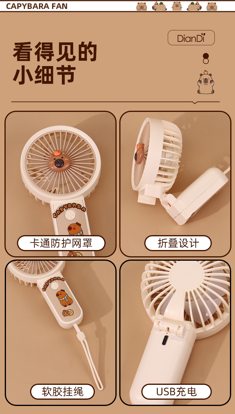 夏日创意卡通水豚手持小风扇迷你便携式USB充电随身带挂绳电风扇