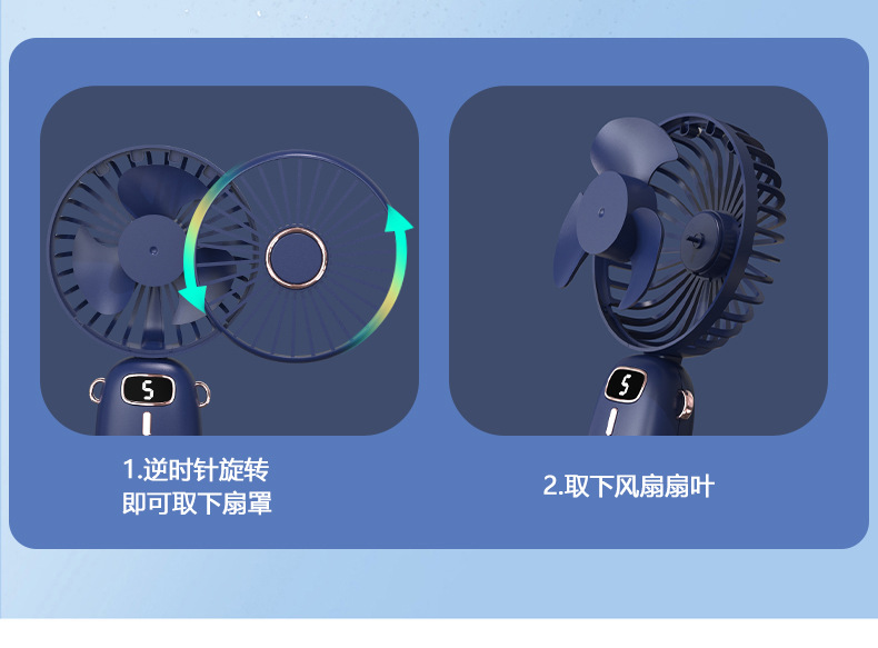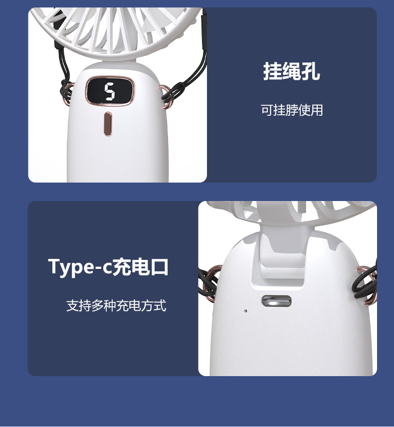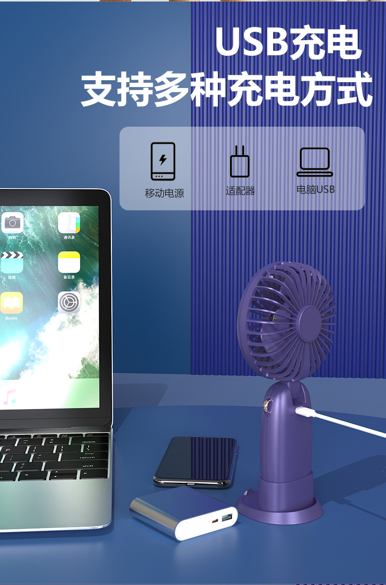手持小风扇定制LOGO便携折叠迷你USB充电挂脖风扇桌面办公室跨境