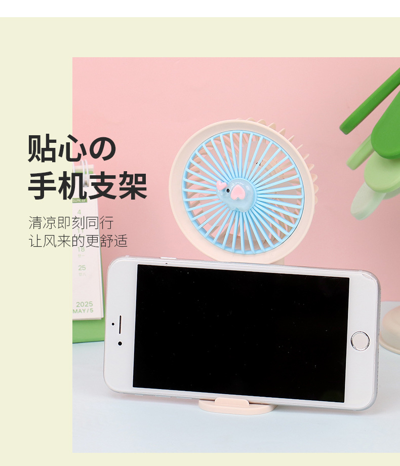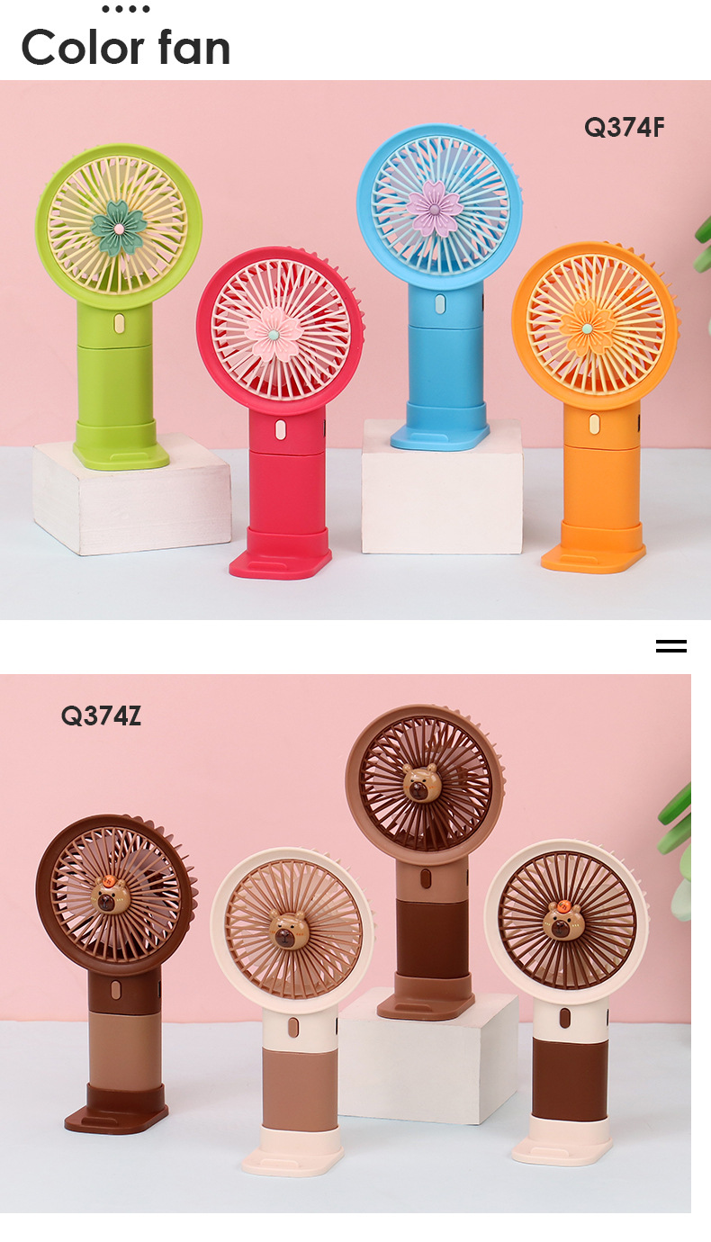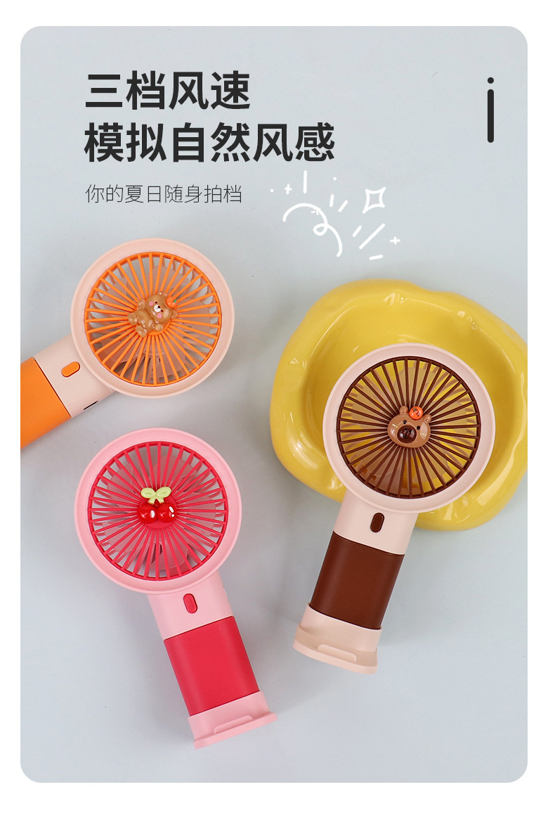 水豚迷你手持风扇usb风扇可爱撞色手机支架桌面风扇印制logo礼品