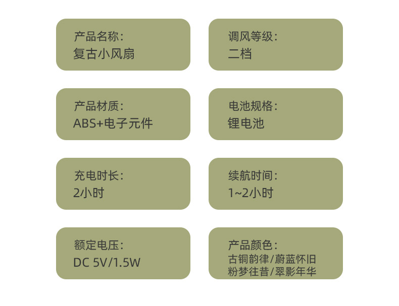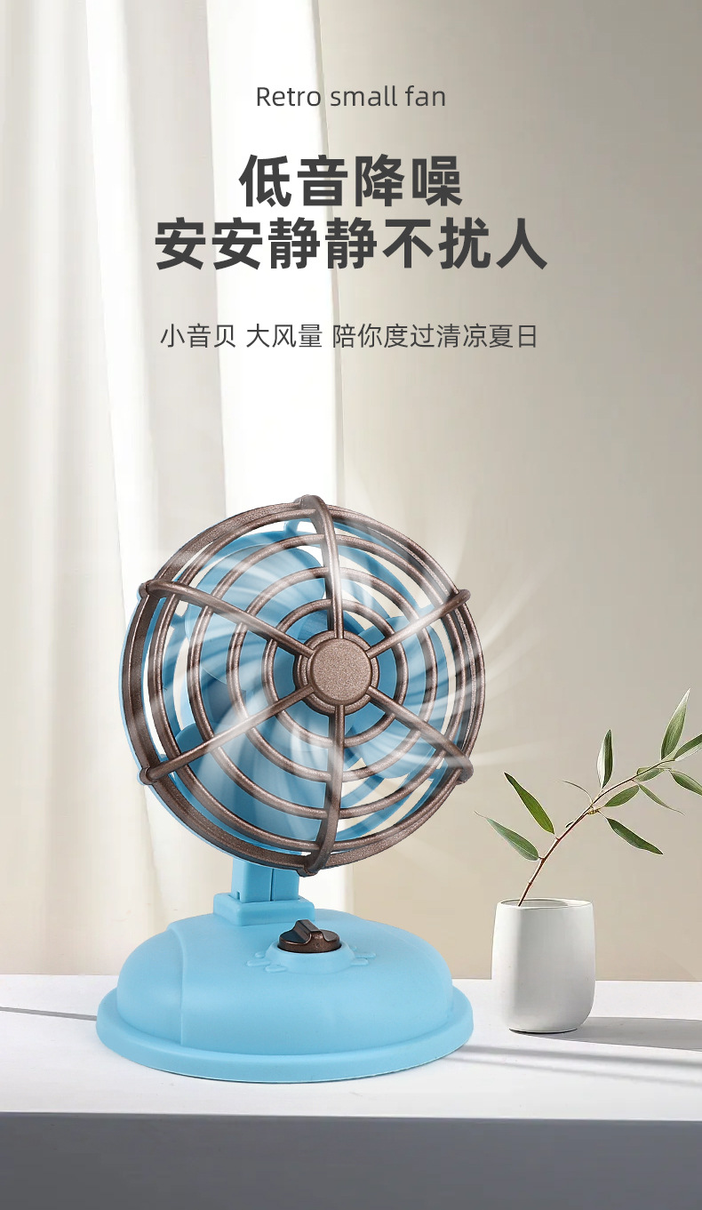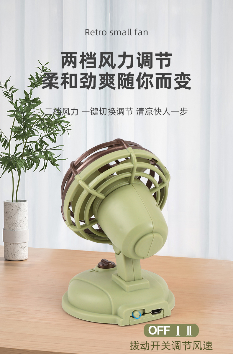 跨境复古迷你桌面风扇usb充电两档风速室内户外便捷式手持小风扇
