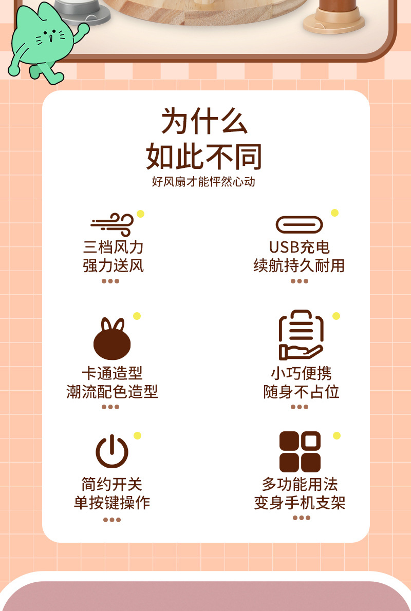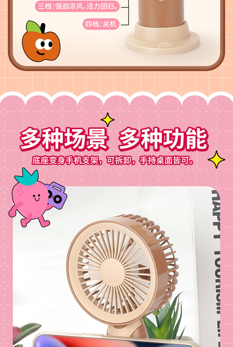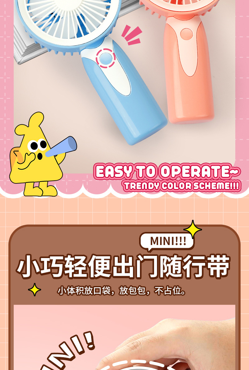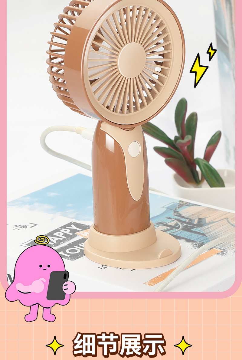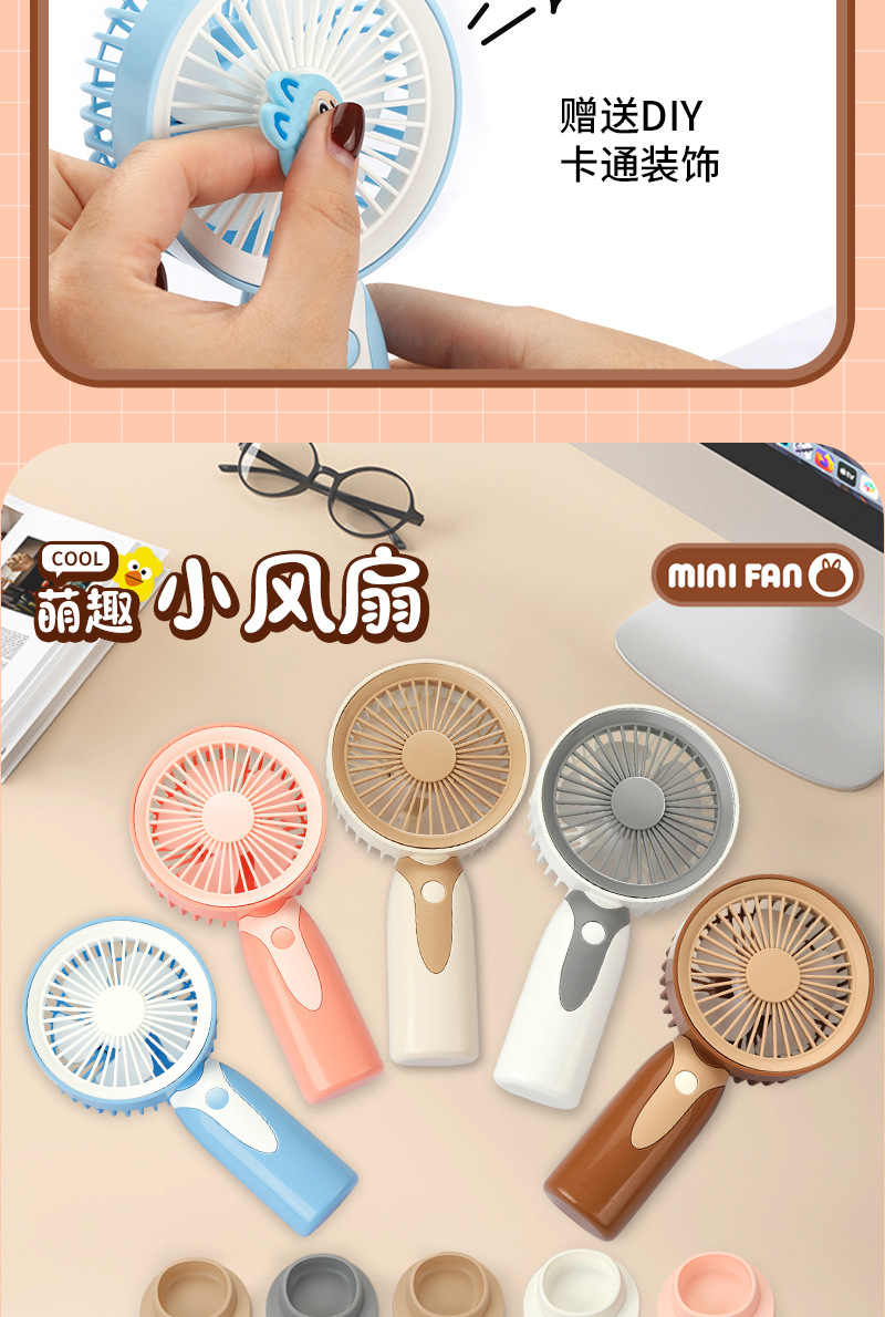 新品简约充电小风扇手持台式桌面迷你三档大风力调节风扇