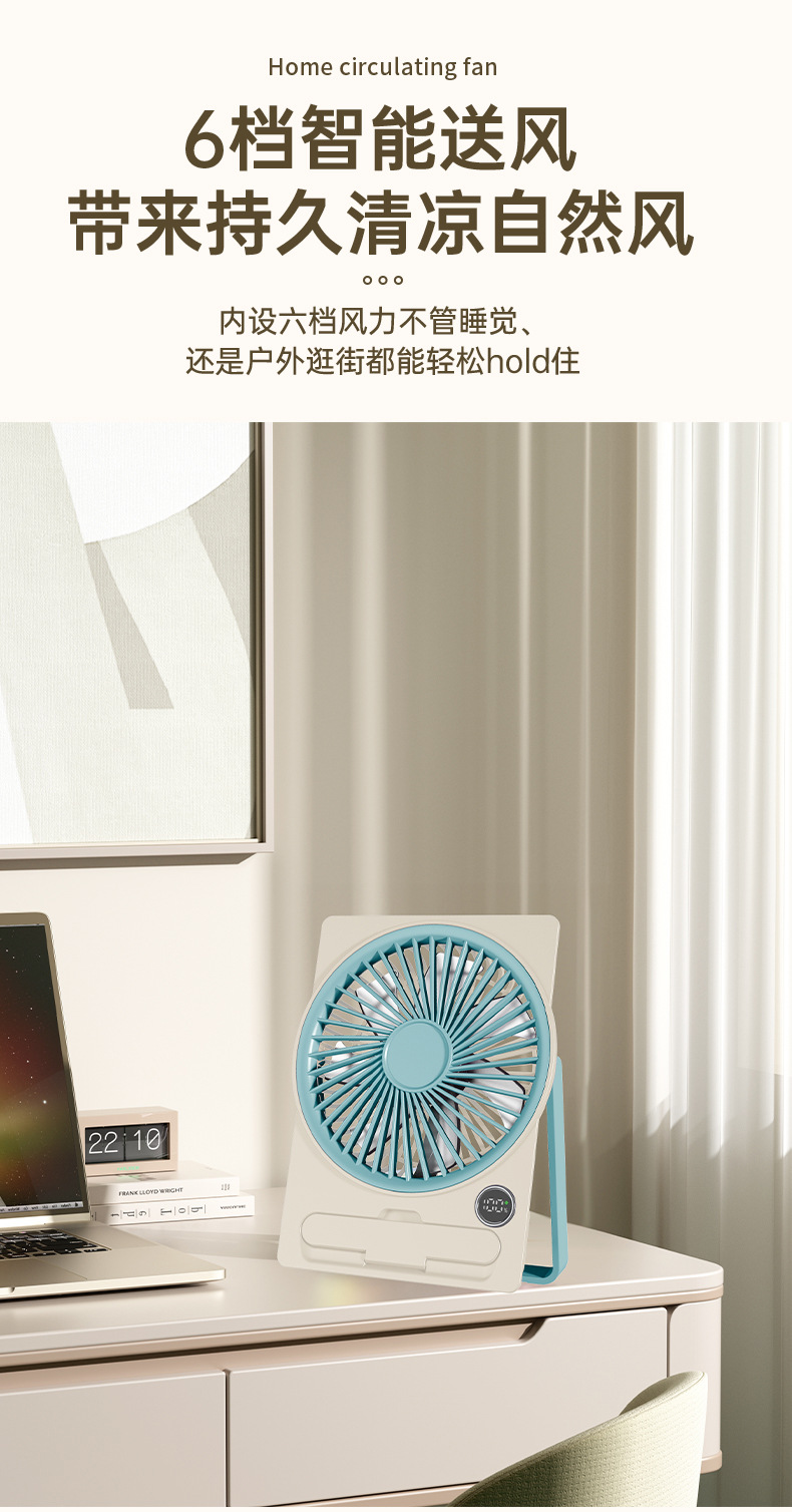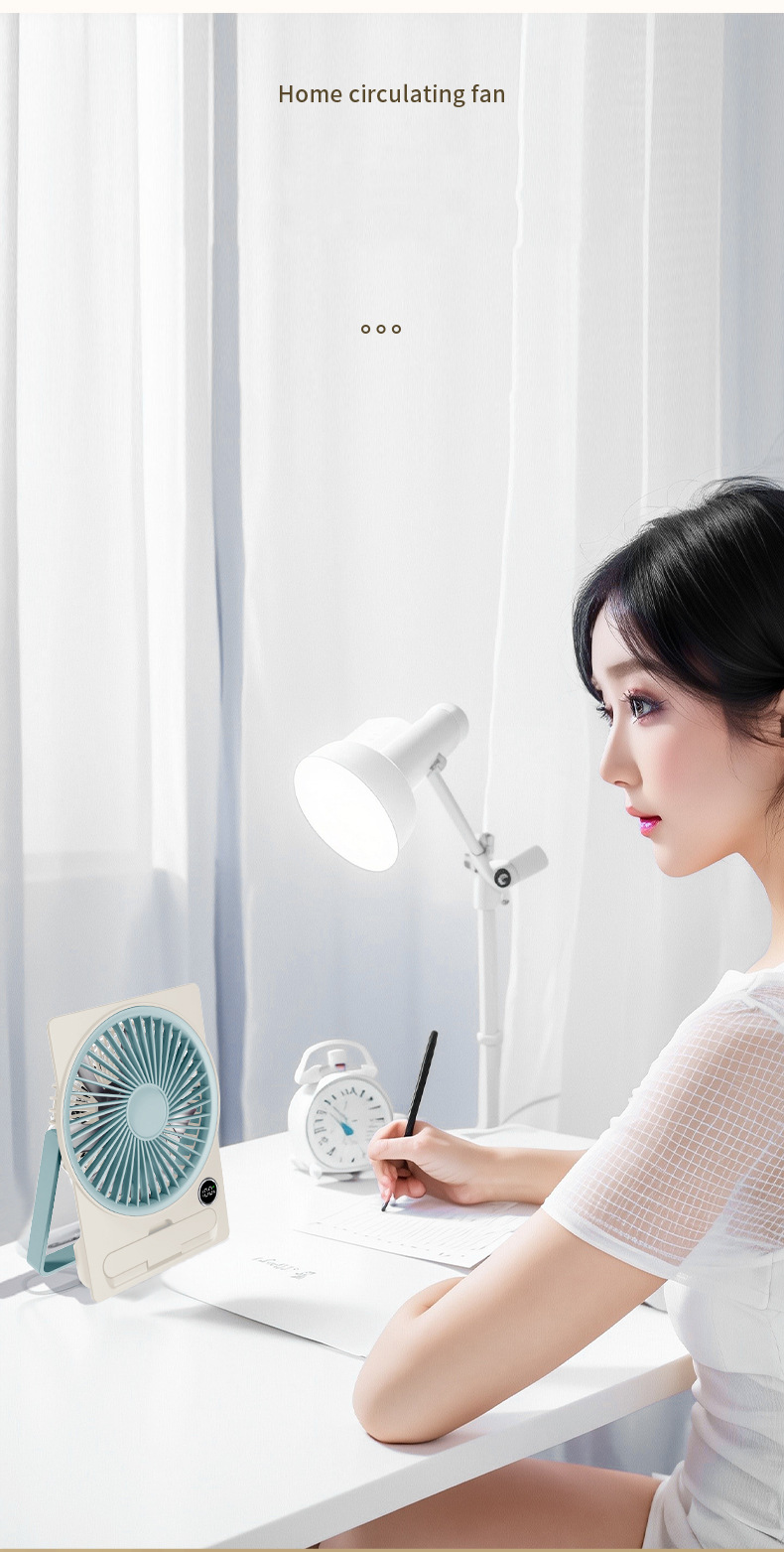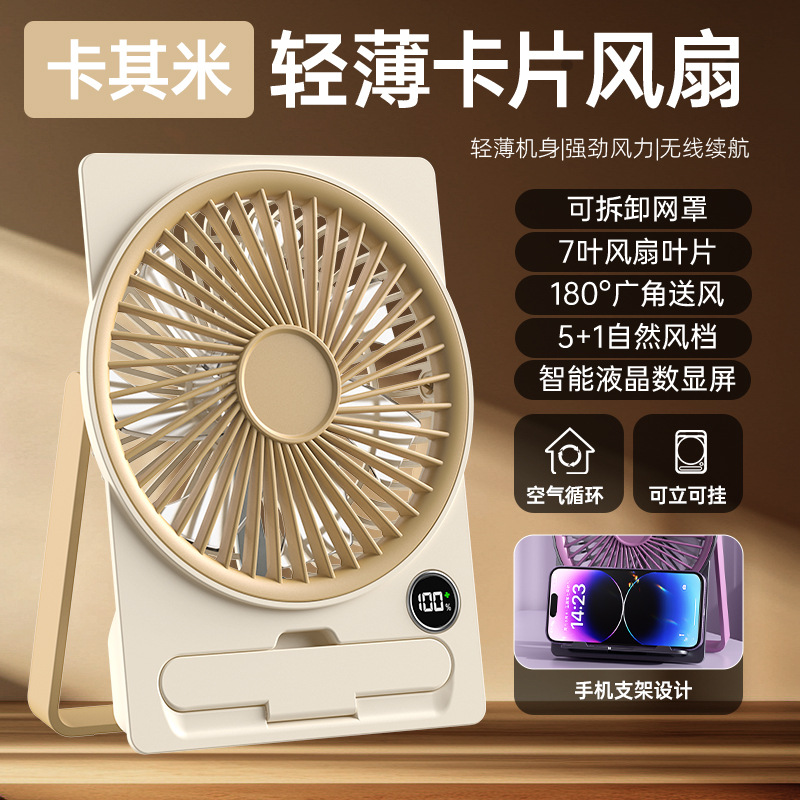 跨境外贸桌面数显屏轻薄卡片小风扇USB充电迷你便携家用宿舍户外