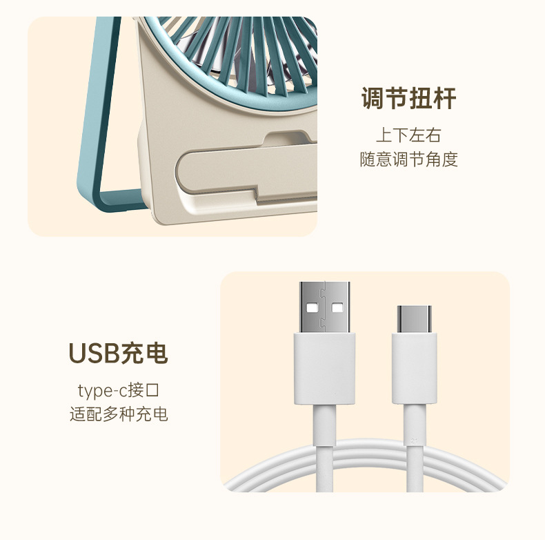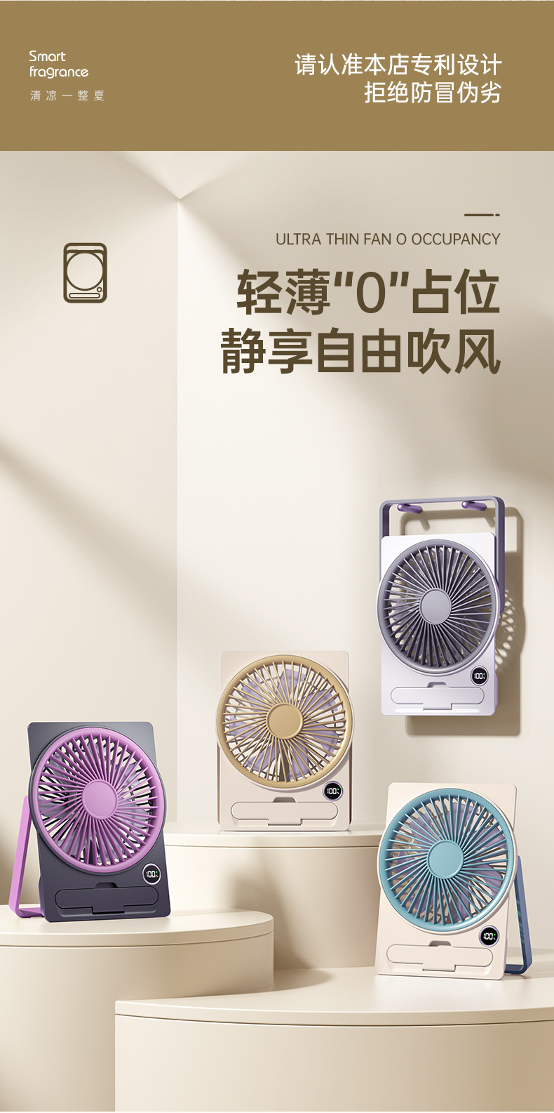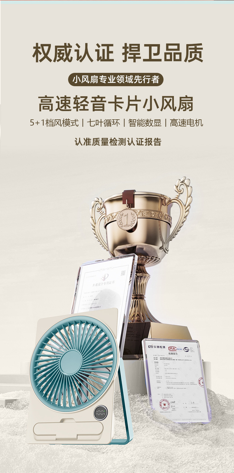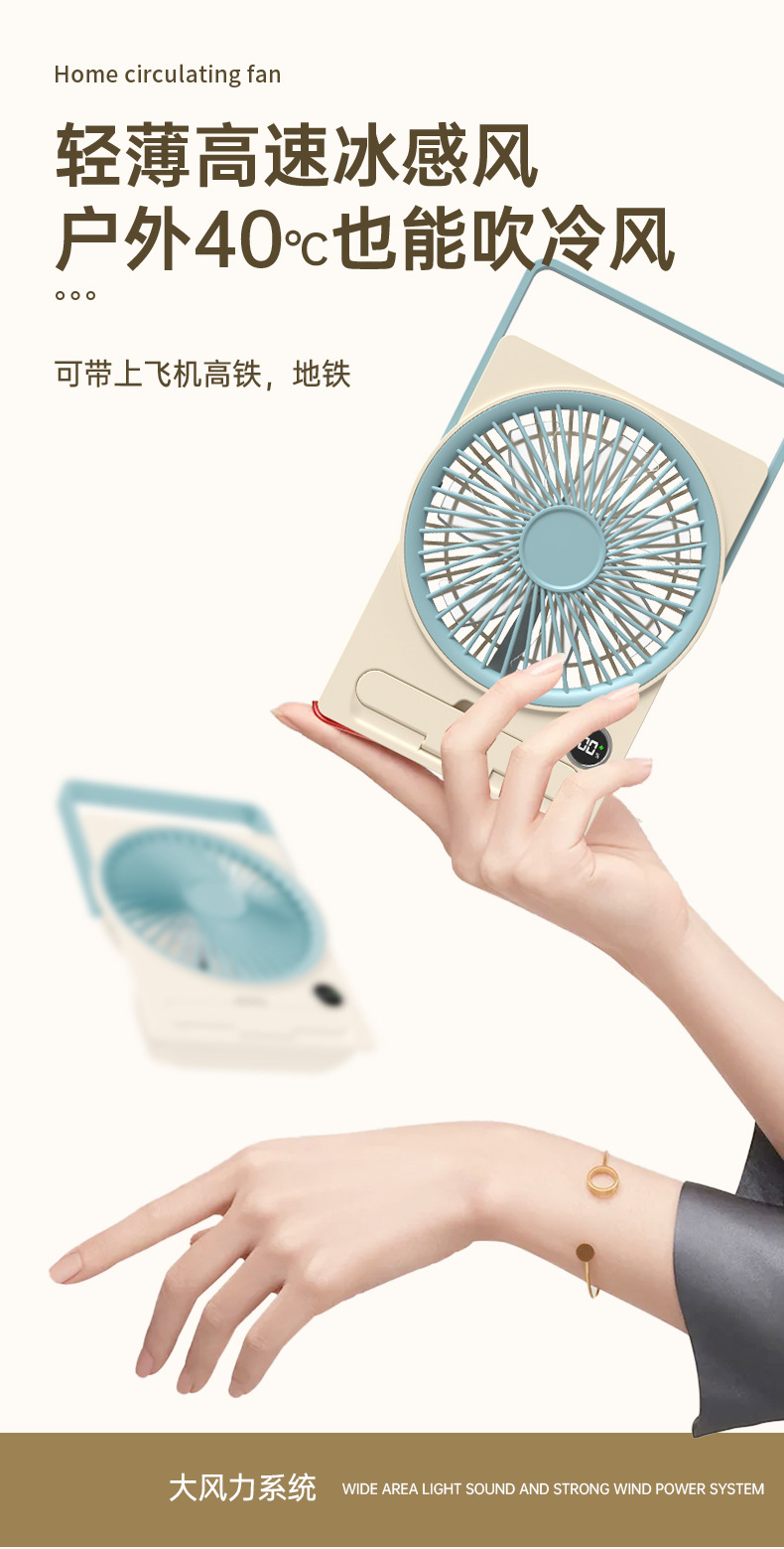跨境外贸桌面数显屏轻薄卡片小风扇USB充电迷你便携家用宿舍户外