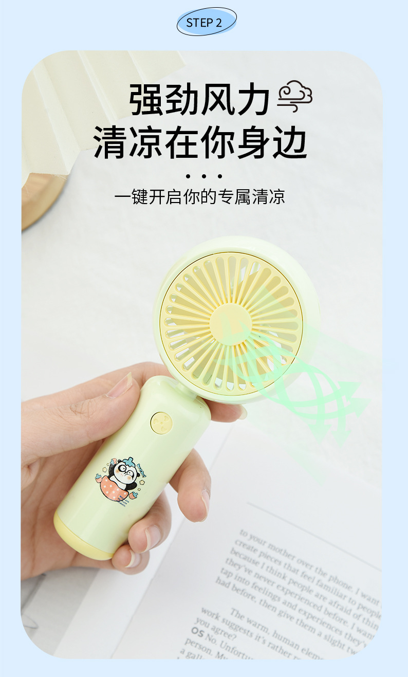 雅色比鲁斯手持小风扇USB充电三档风速儿童学生卡通电扇六一送礼