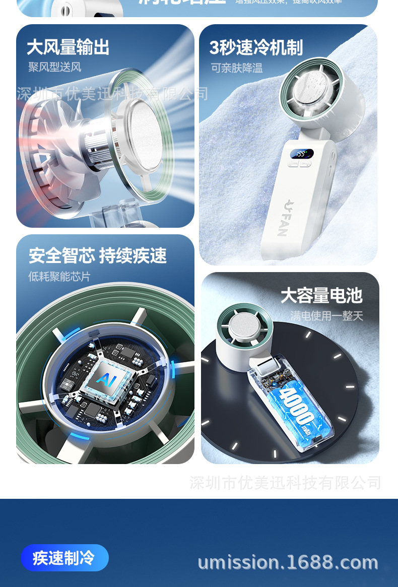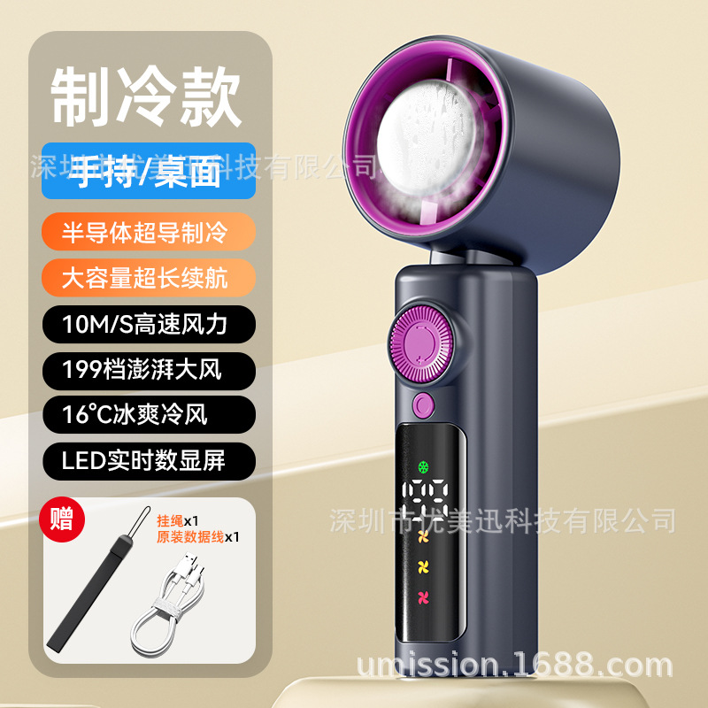 跨境半导体制冷冰敷高速暴力手持风扇usb便携式可挂脖户外小风扇