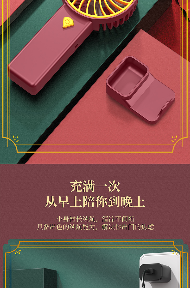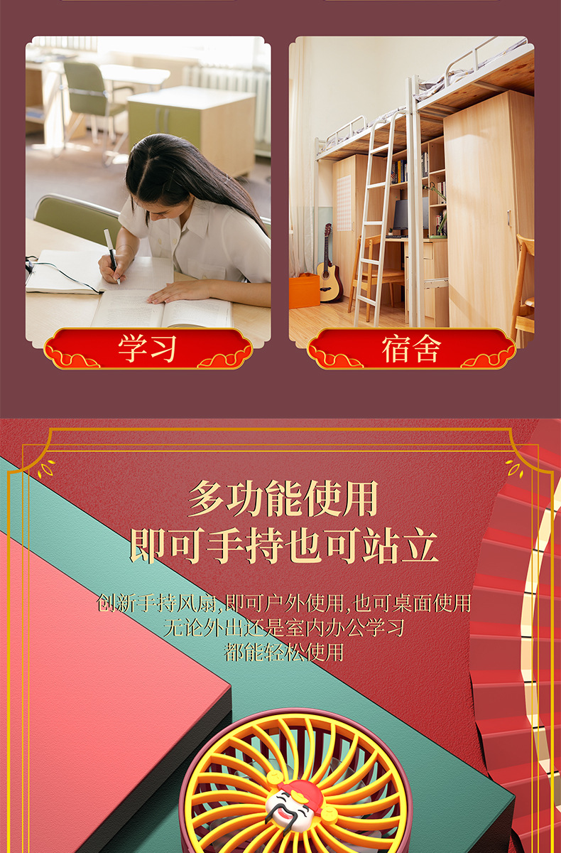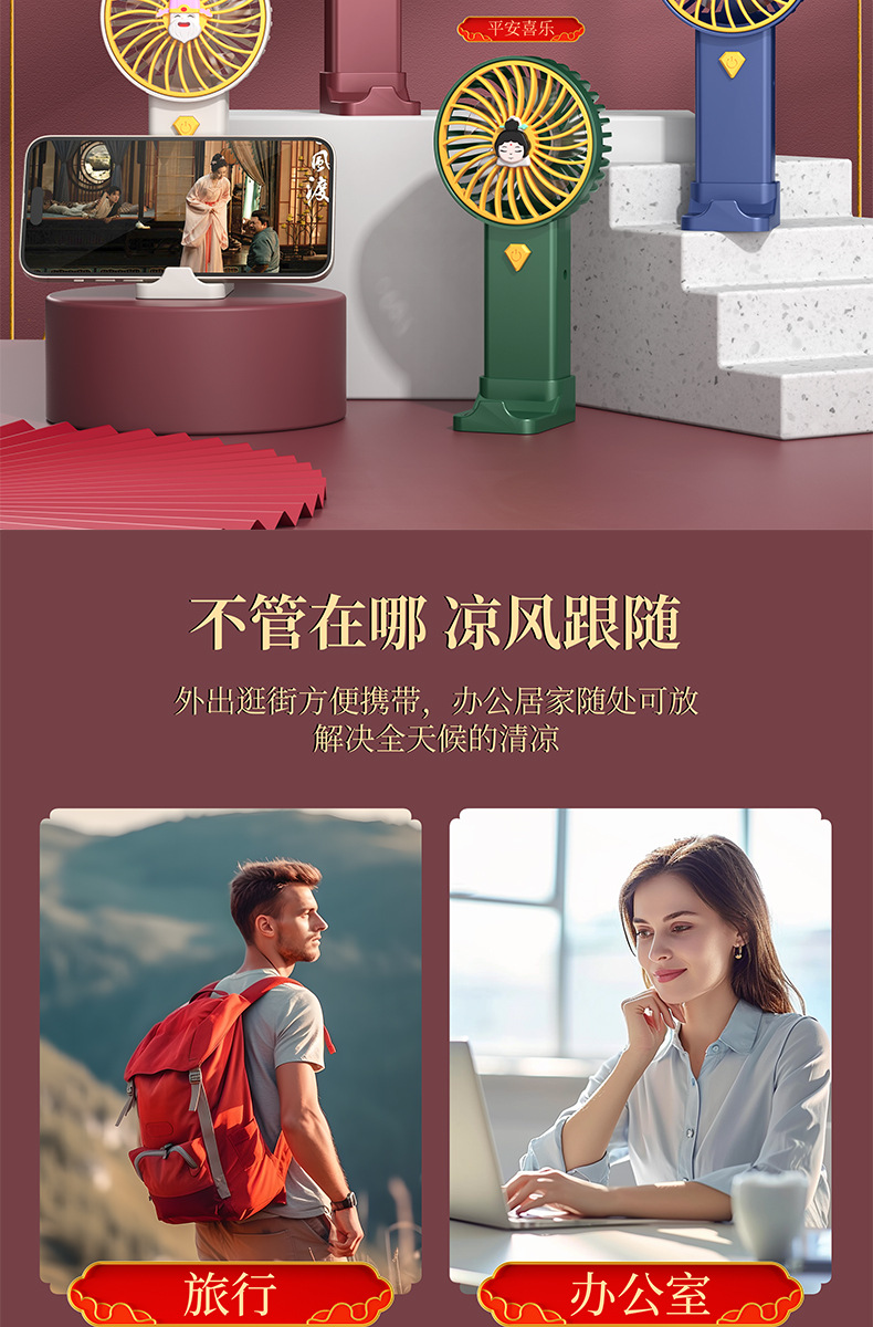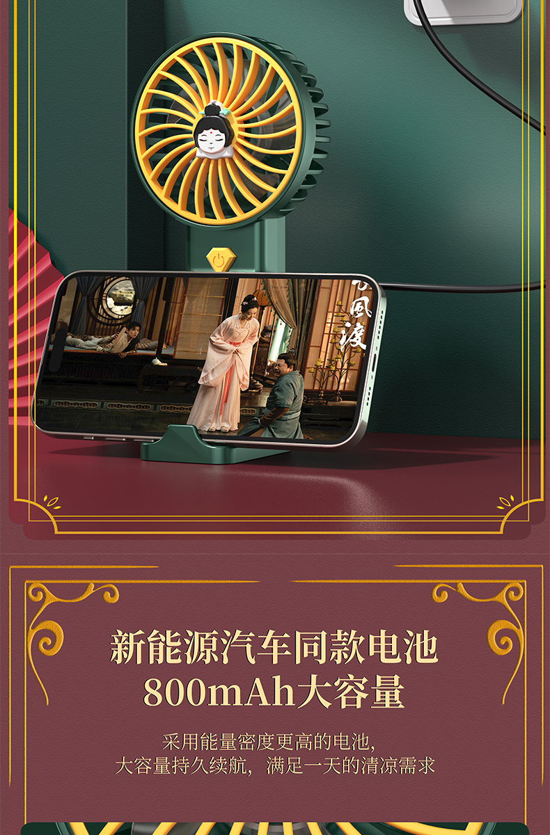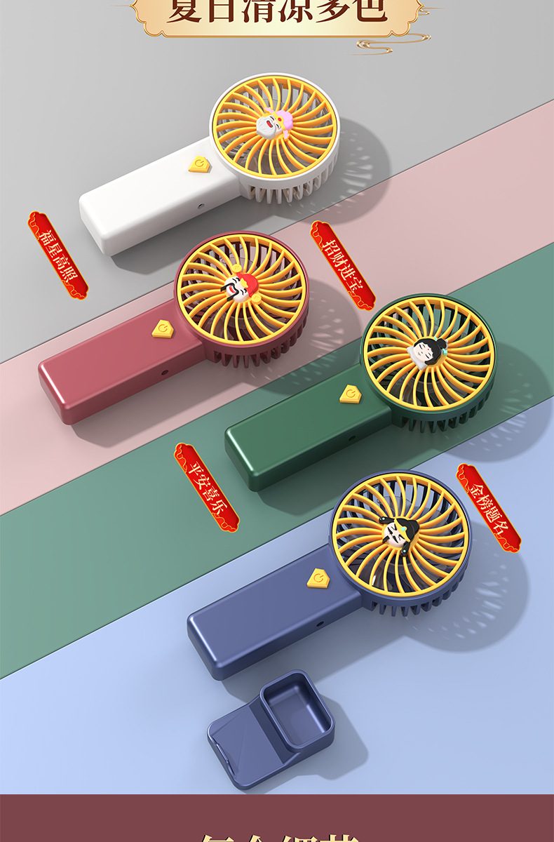 国潮风手持小风扇USB可充电便携商务礼品可印LOGO源头工厂批发