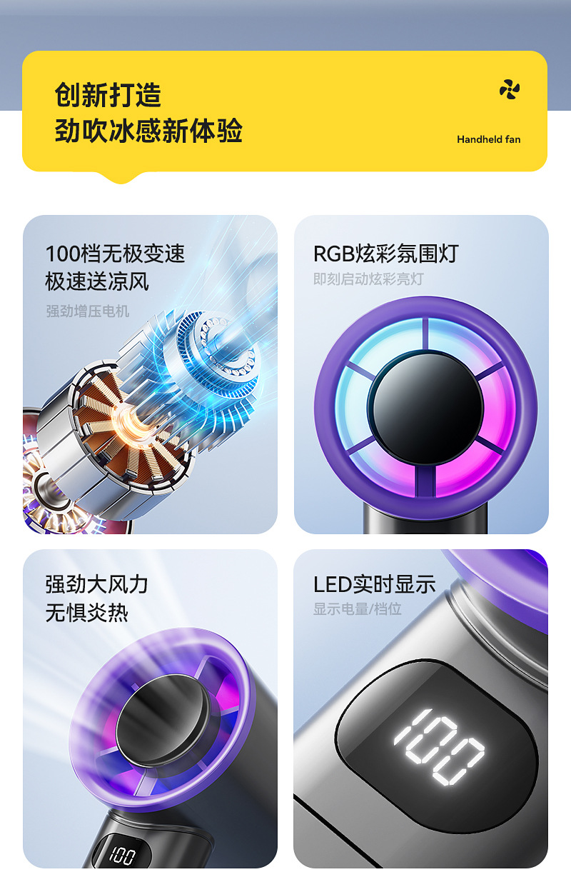 数显120档桌面电风扇小型高速手持小风扇usb充电迷你户外便携风扇