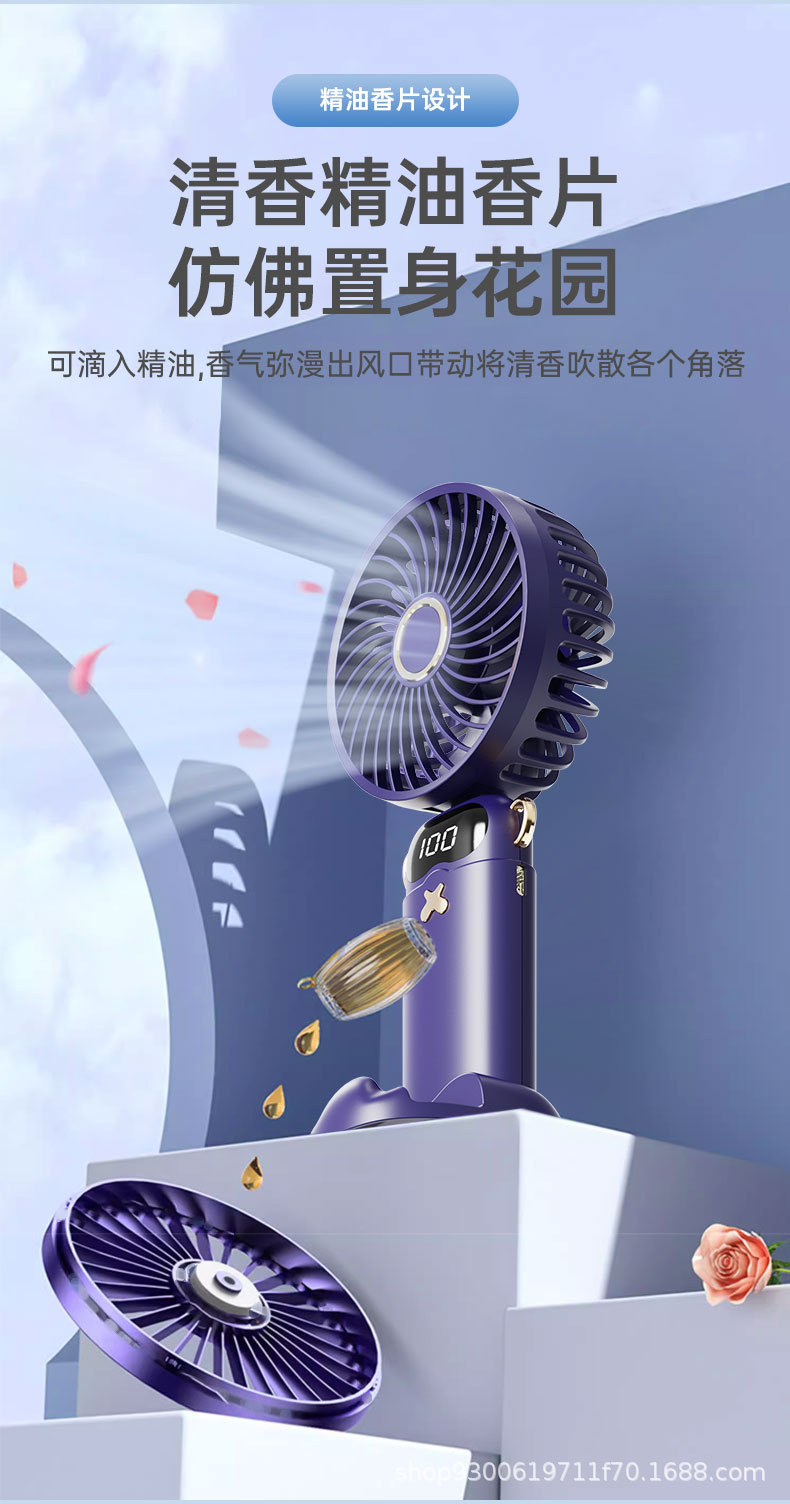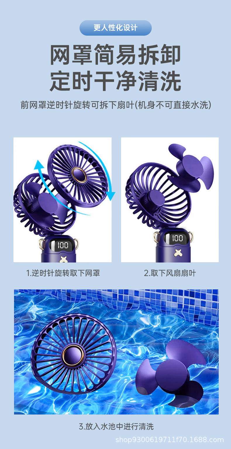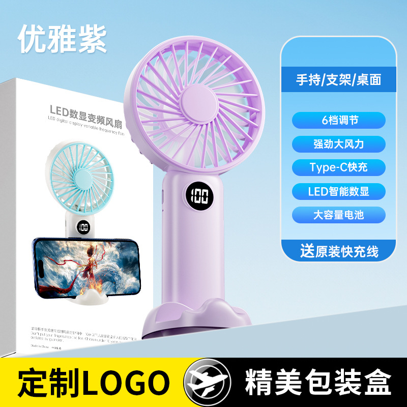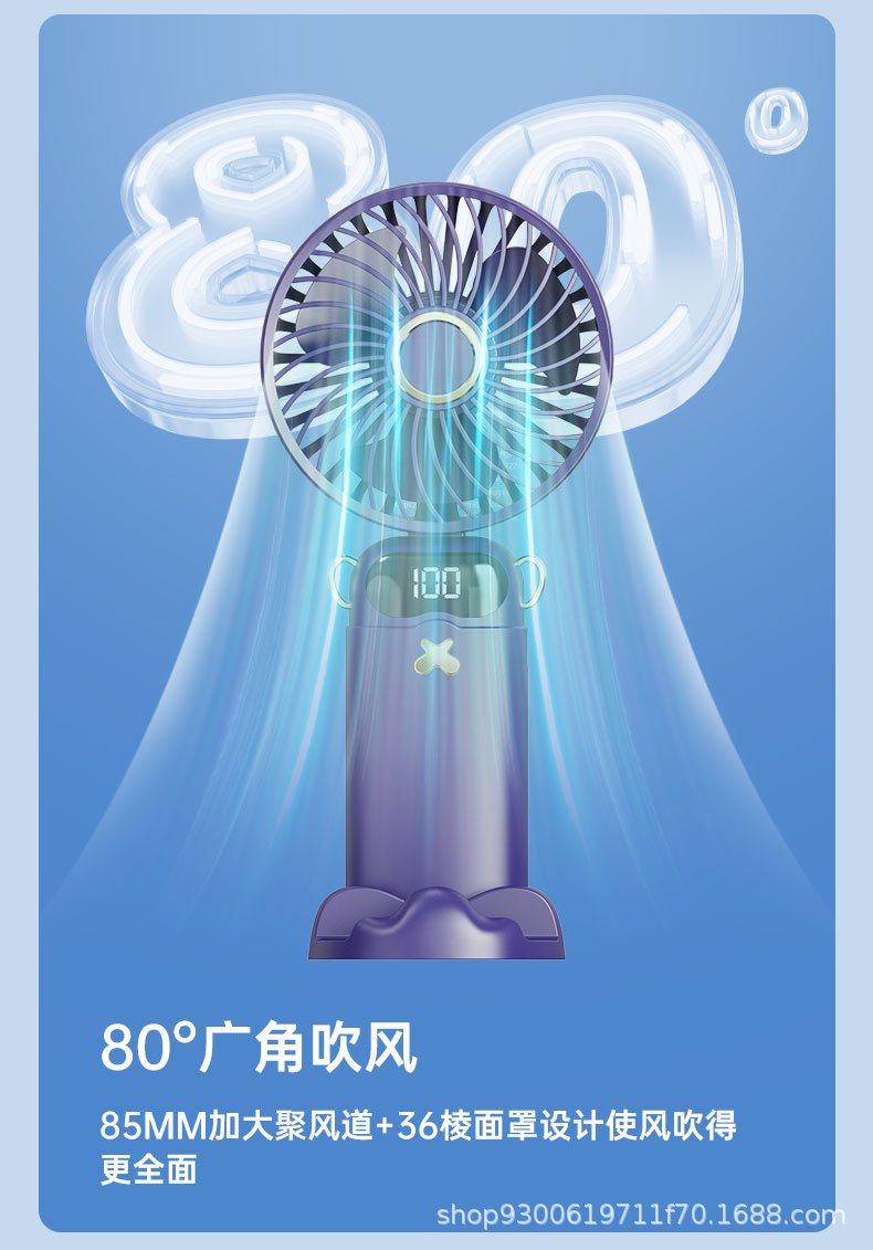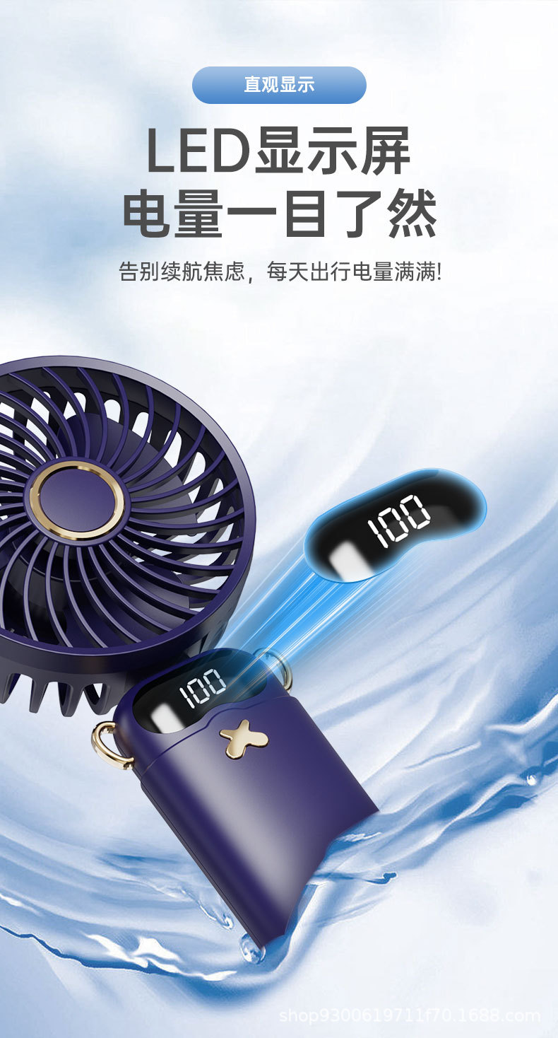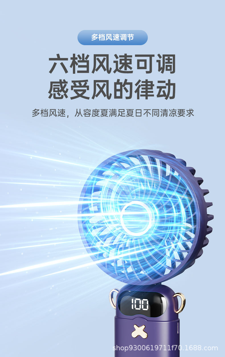 跨境【来图彩印】数显折叠手持小风扇USB迷你便携静音宿舍学生户