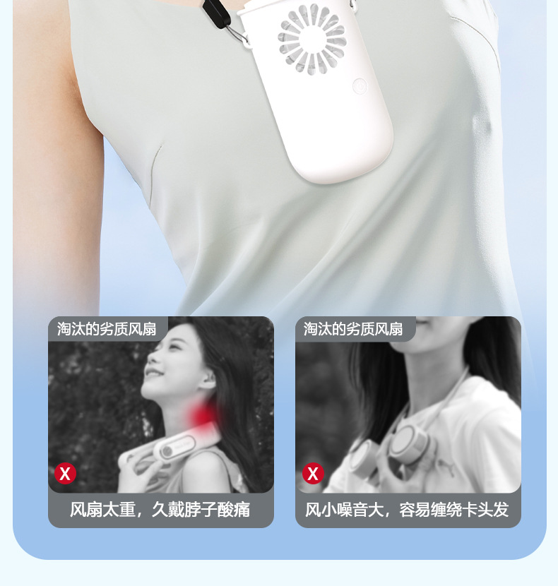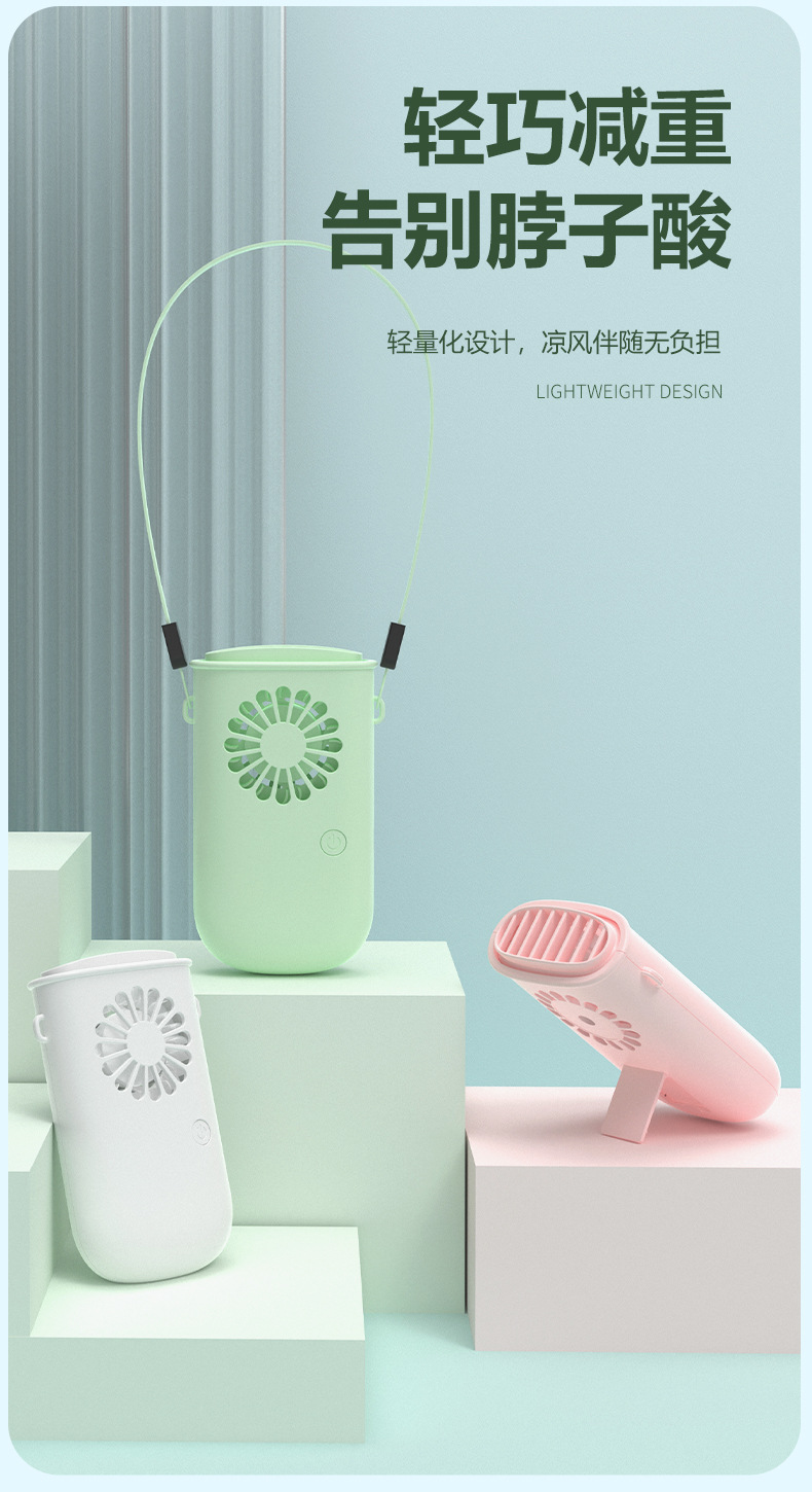 新款迷你无叶挂脖小风扇手持小风扇挂绳式便携式USB家用小电风扇