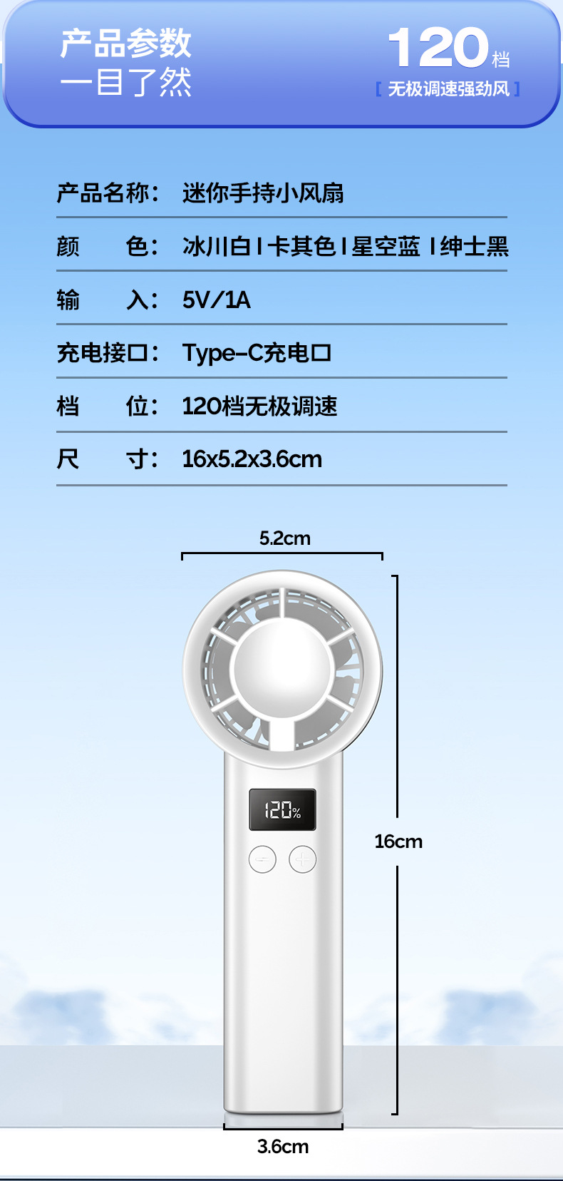 跨境新款手持风扇120档迷你usb充电小风扇便携式小型桌面户外风扇