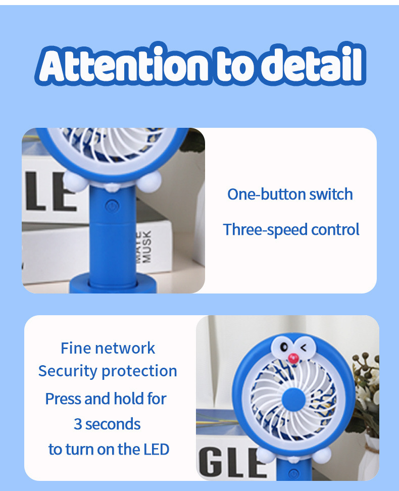 卡通萌宠迷你手持灯光小风扇USB充电夏季户外儿童随身便携电风扇