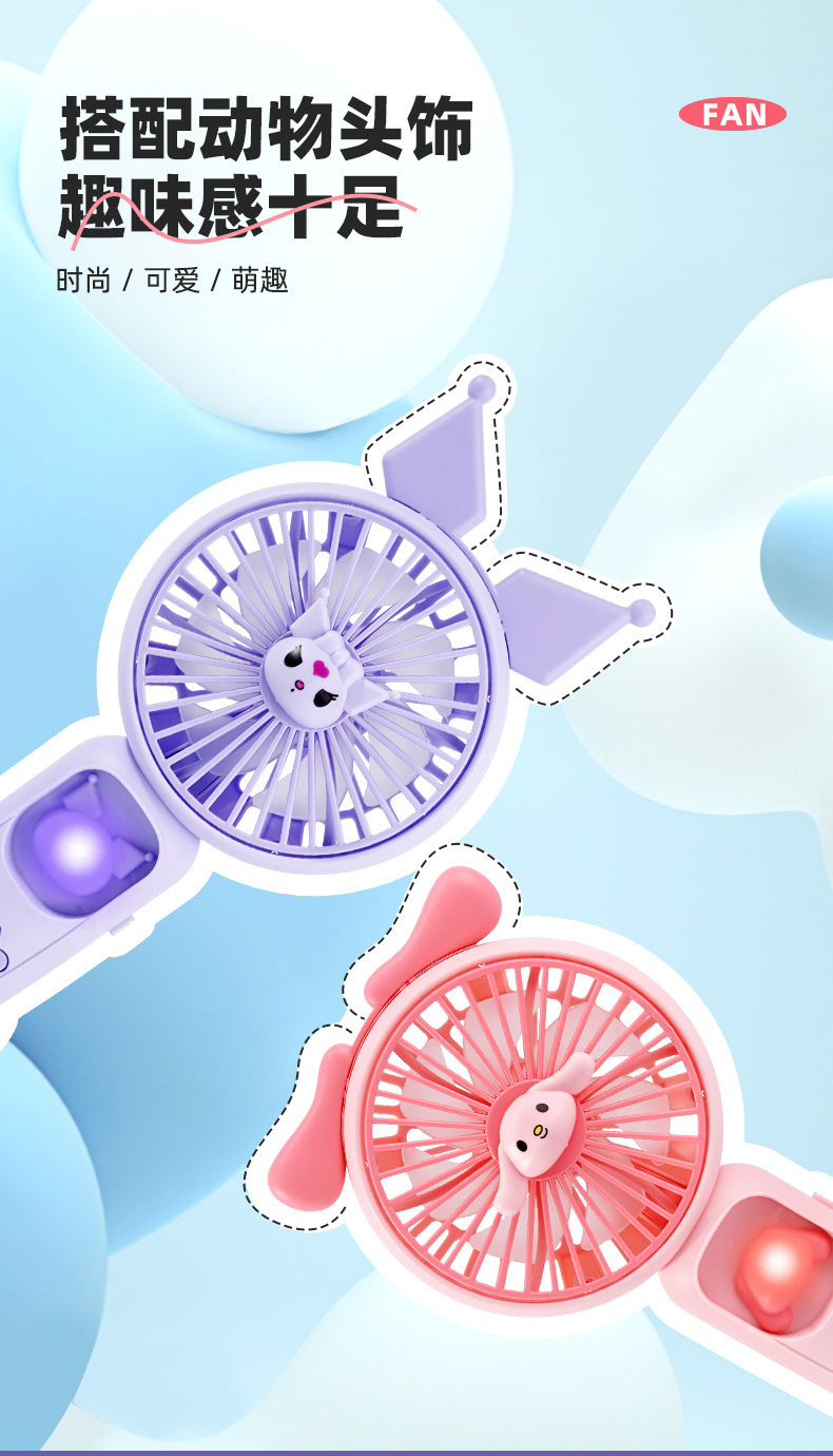 泰国菲律宾热卖手持风扇大风力户外挂绳便携灯光迷你充电小电风扇