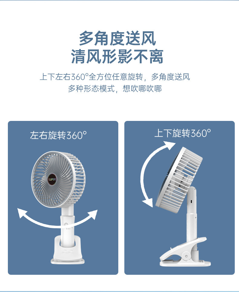 跨境新品usb夹子风扇迷你便携式充电桌面学生宿舍挂壁小风扇夹扇