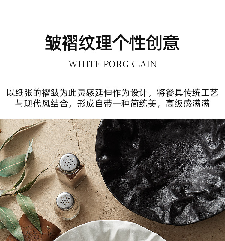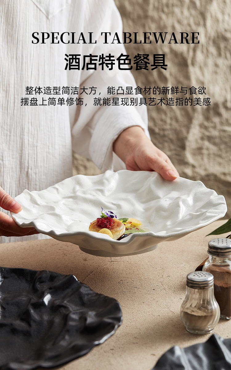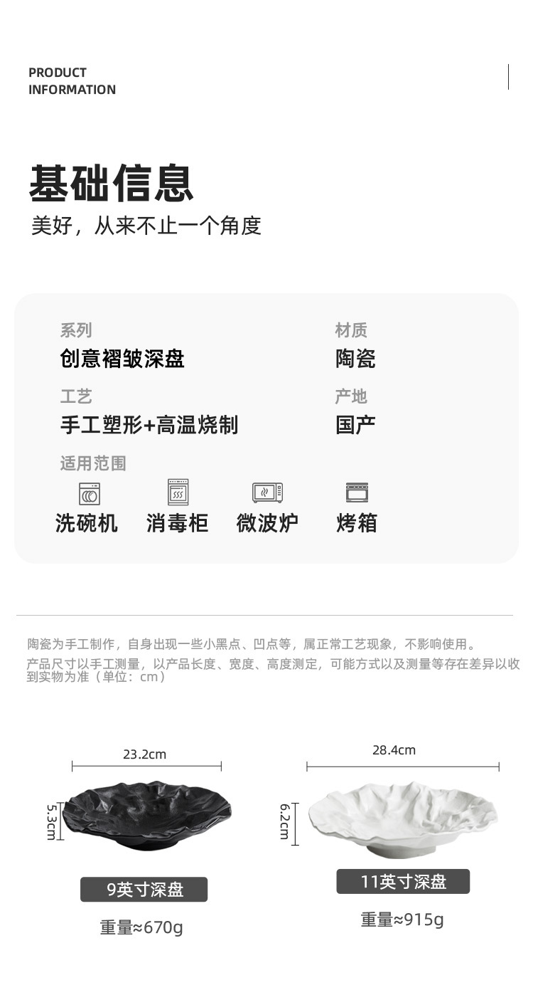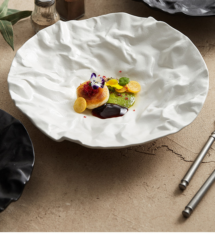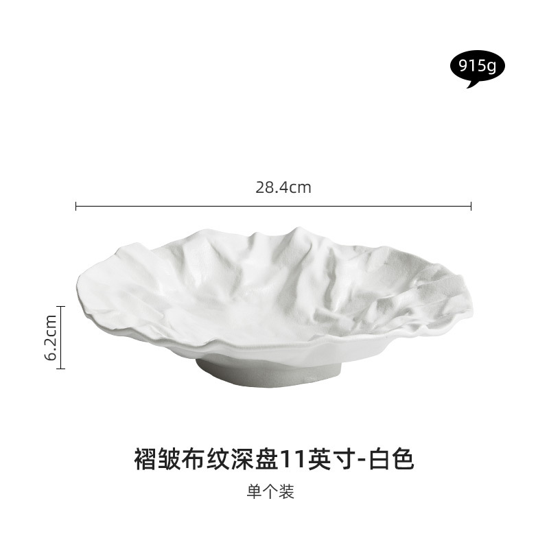 褶皱深菜盘子碗高级感日式餐具西餐沙拉陶瓷高端碟子家用2024新款