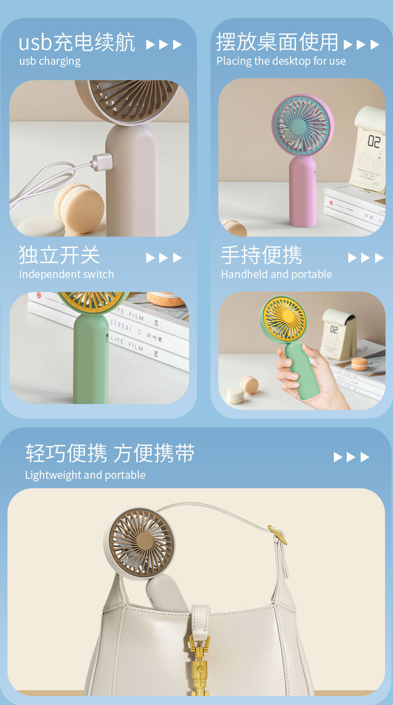 简约清新手持小风扇USB充电式可立式手持小风扇便携式手持小电扇