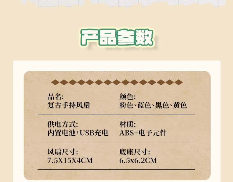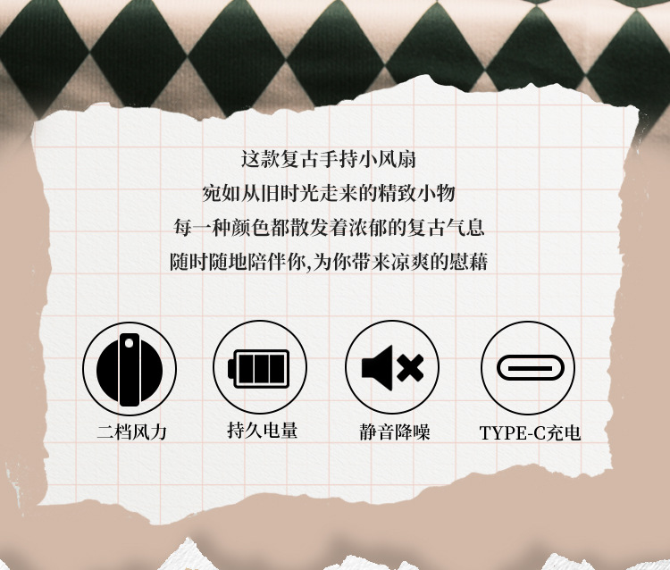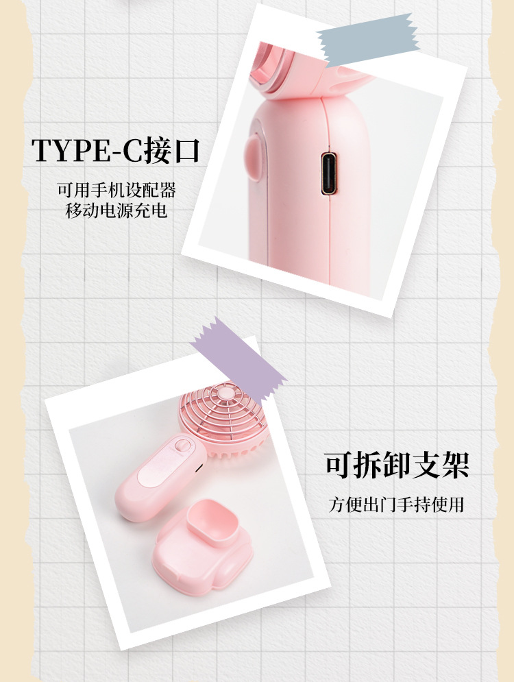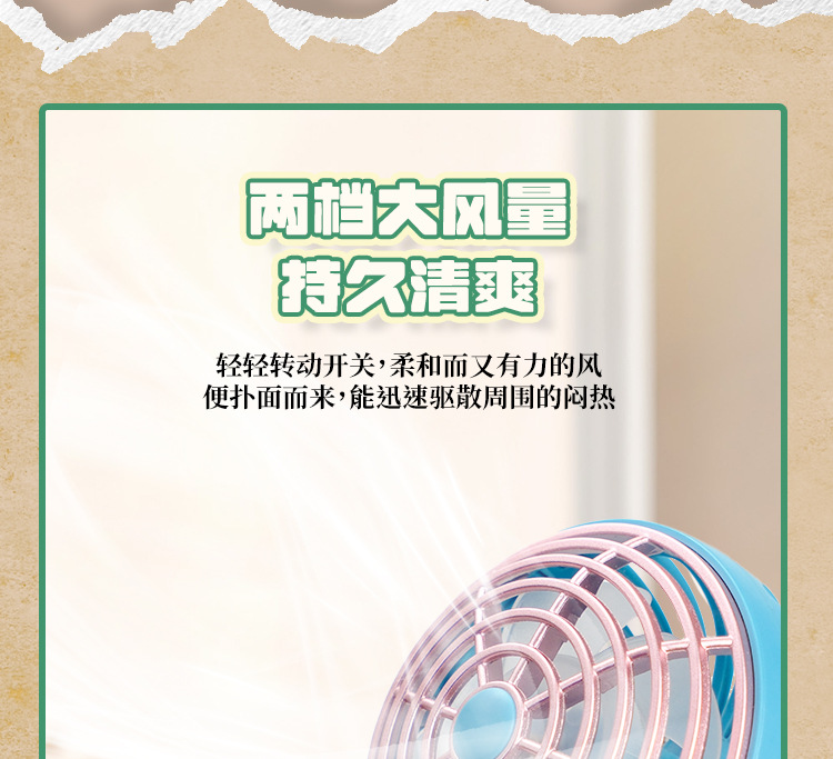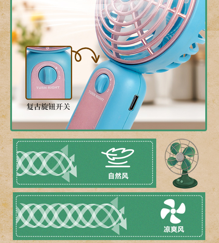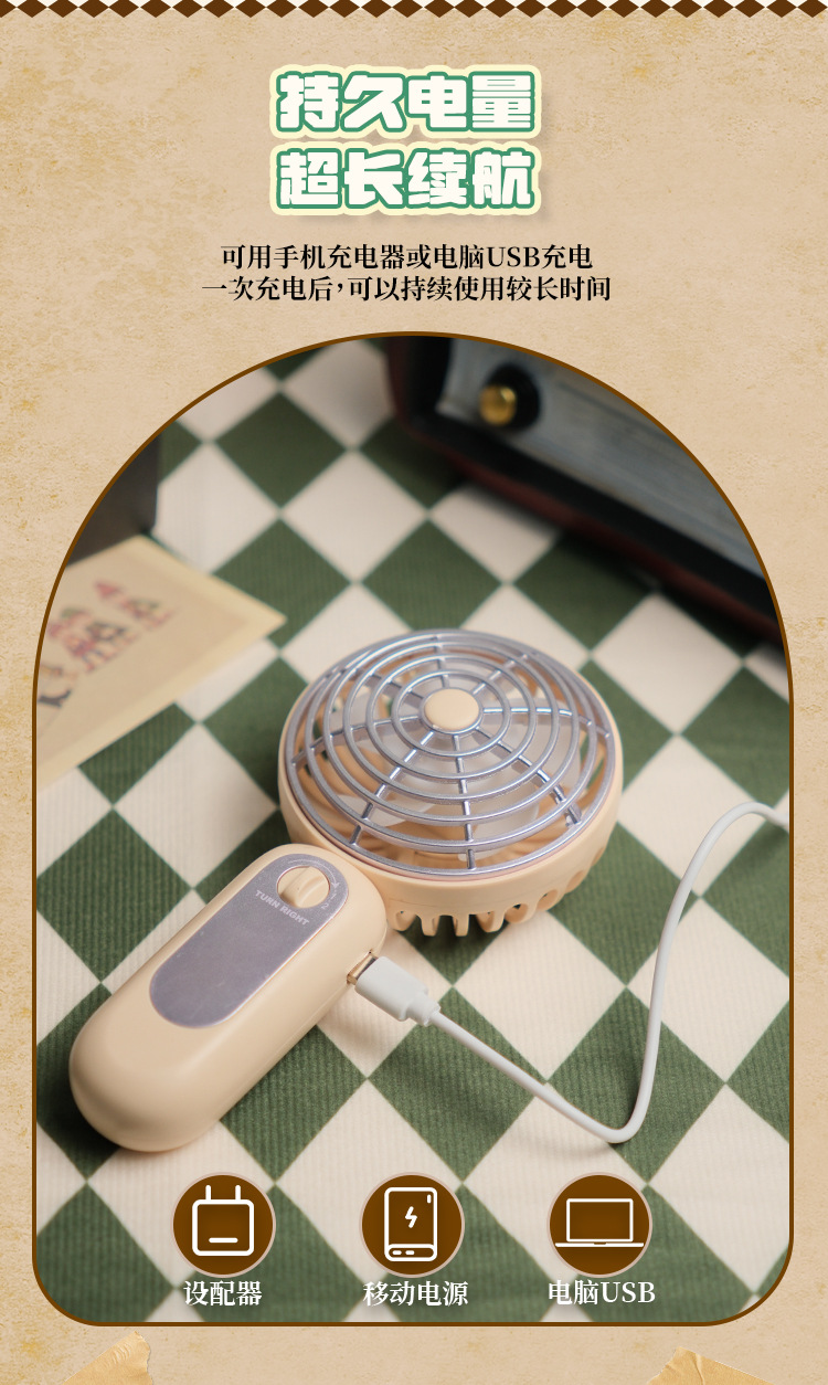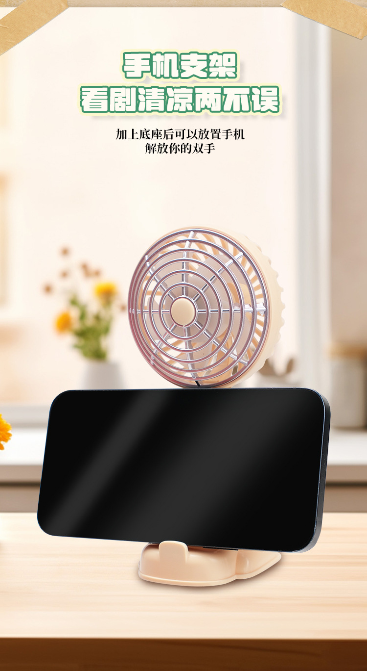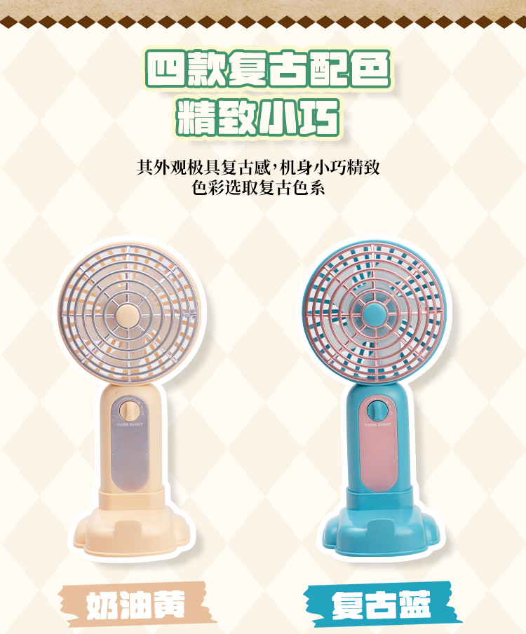 复古手持小风扇 简约迷你桌面电风扇便携式带手机支架USB充电风扇