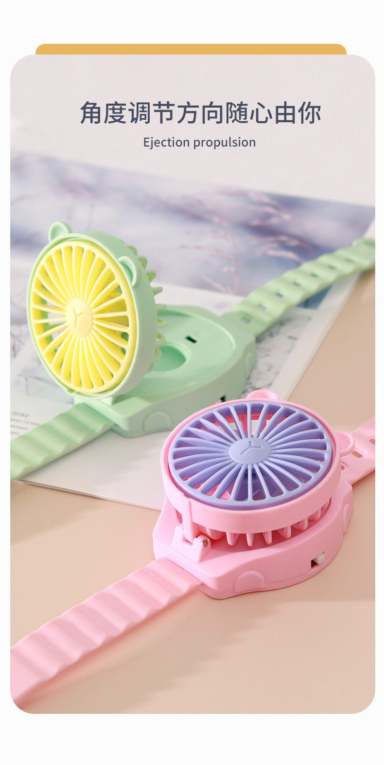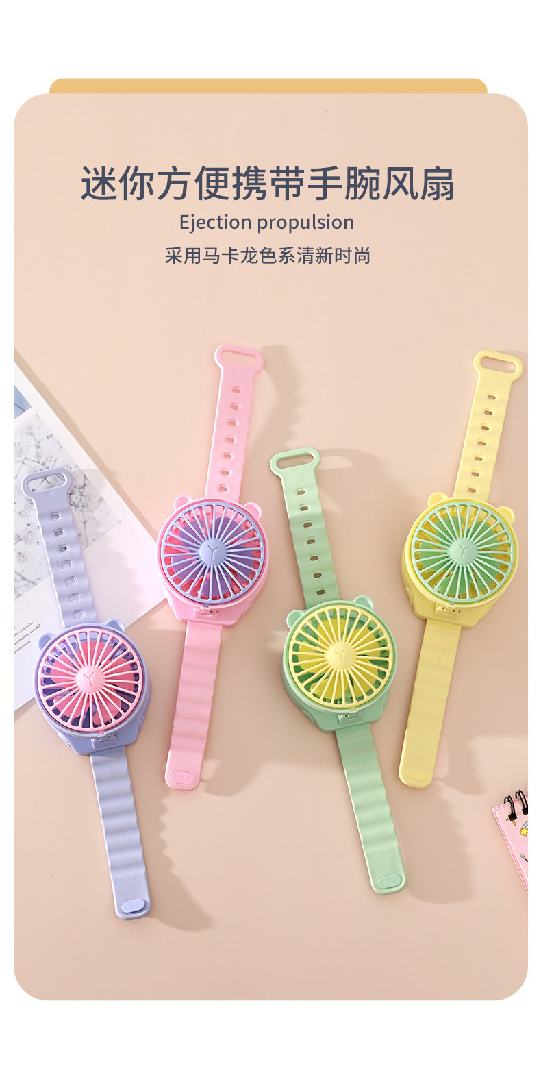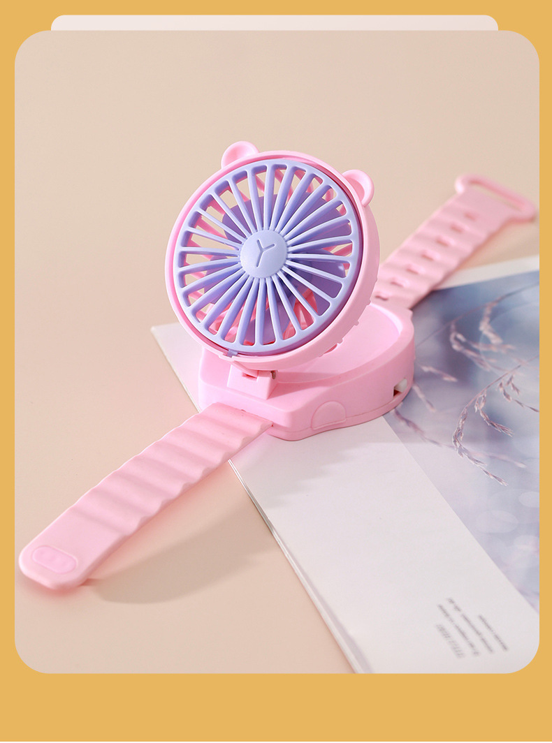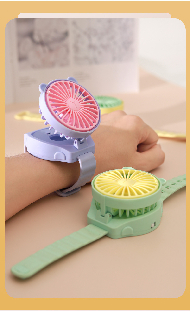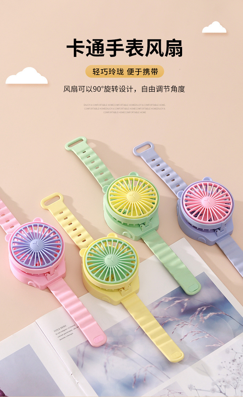 夏天热卖卡通迷你手表小风扇儿童随时便携式手腕电风扇生日玩具