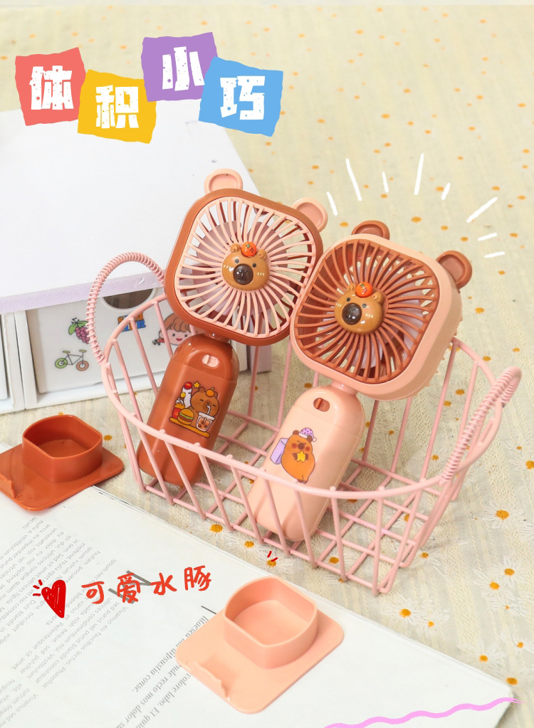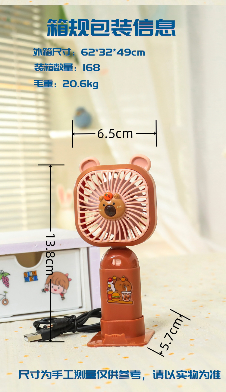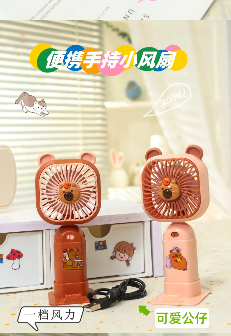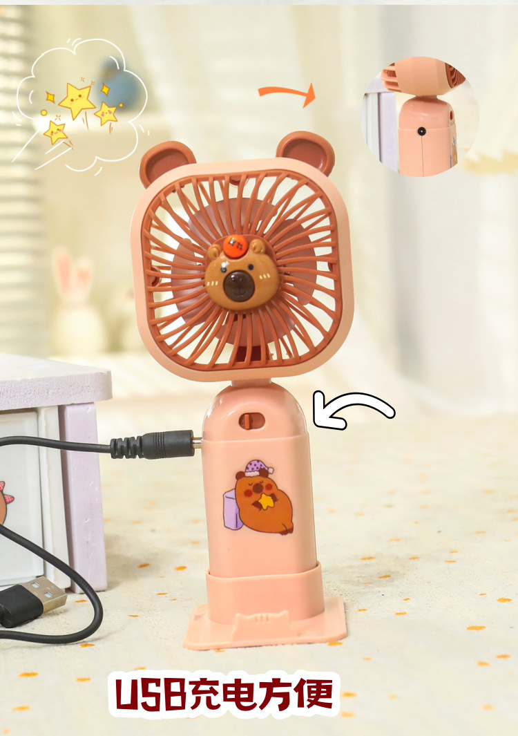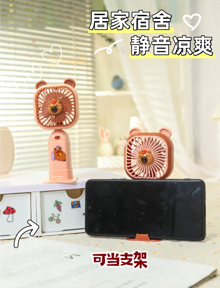 萌趣卡通皮皮公仔手持夏日降温USB充电小风扇 带手机支架底座风扇