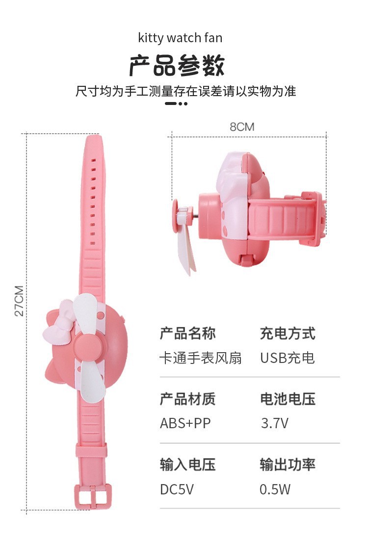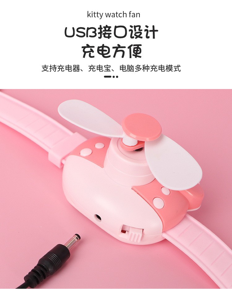 卡通KT猫儿童手表风扇 便携学生可爱创意USB懒人户外手腕小风扇