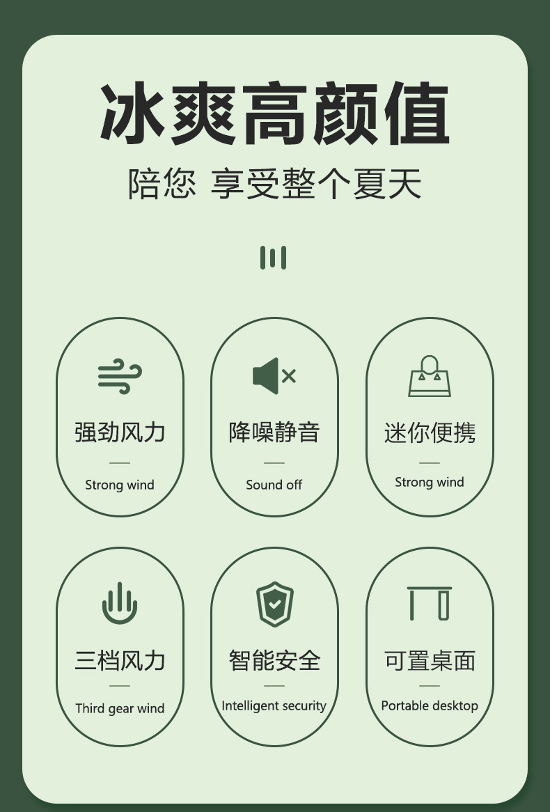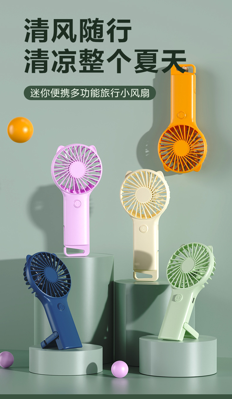 新款户外便携USB充电手持小风扇马卡龙颜色登山挂扣风扇可印LOGO