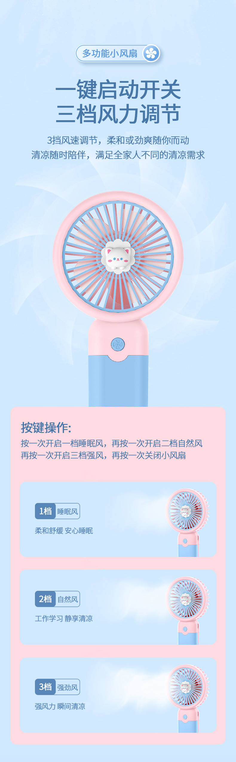 2024静音迷你小风扇学生礼品手持风扇usb充电长续航便携logo礼品