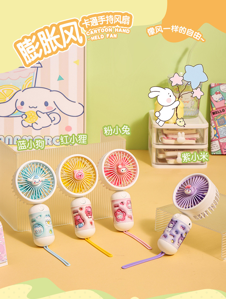 东南亚网红新款创意卡通手持小风扇ins膨胀风库洛米便携式电风扇