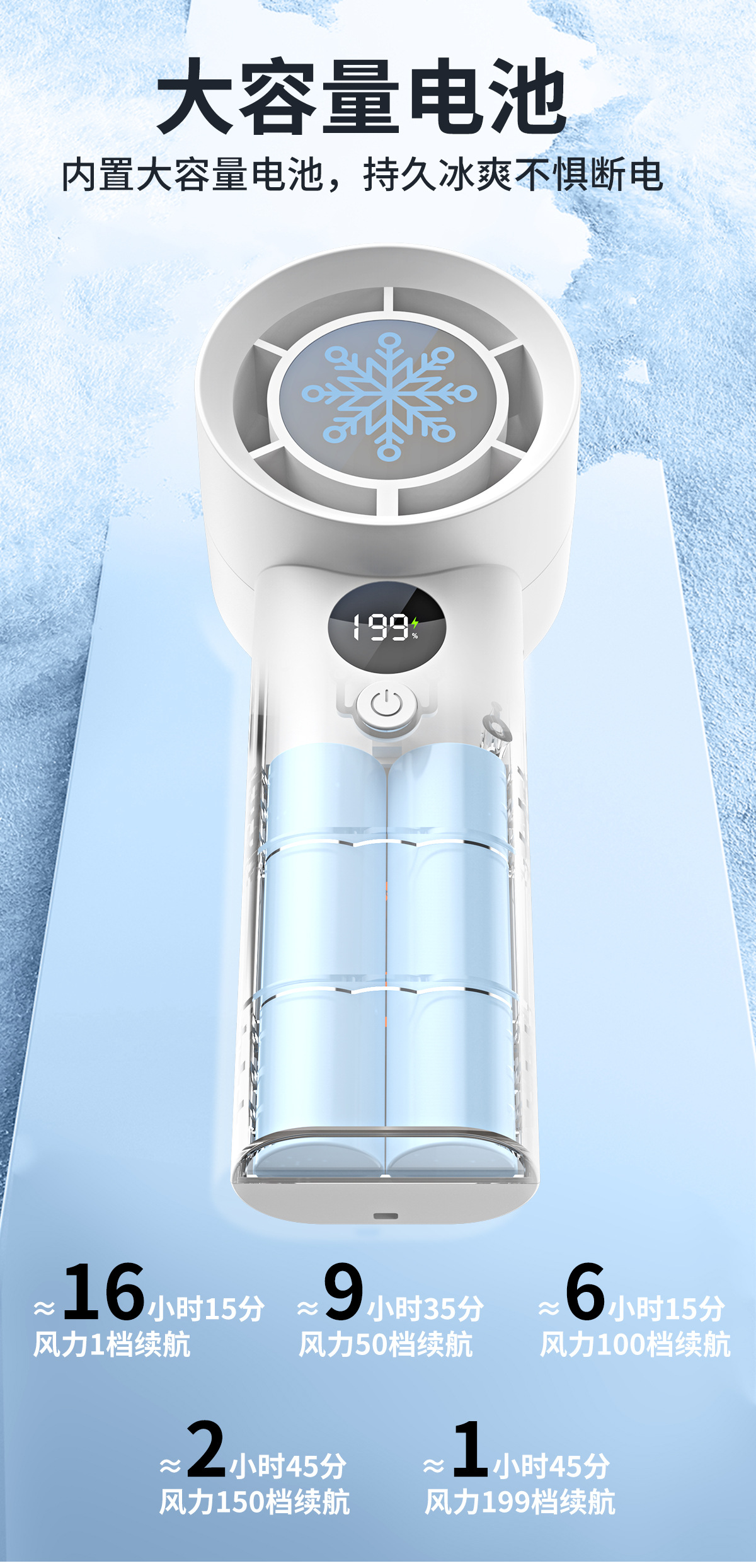 2025新款百挡高速涡轮手持风扇 usb充电迷你数显户外便携式小风扇