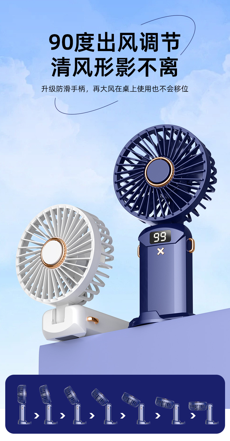 数显手持风扇学生宿舍迷你风扇户外旅游折叠小风扇便携式风扇挂脖