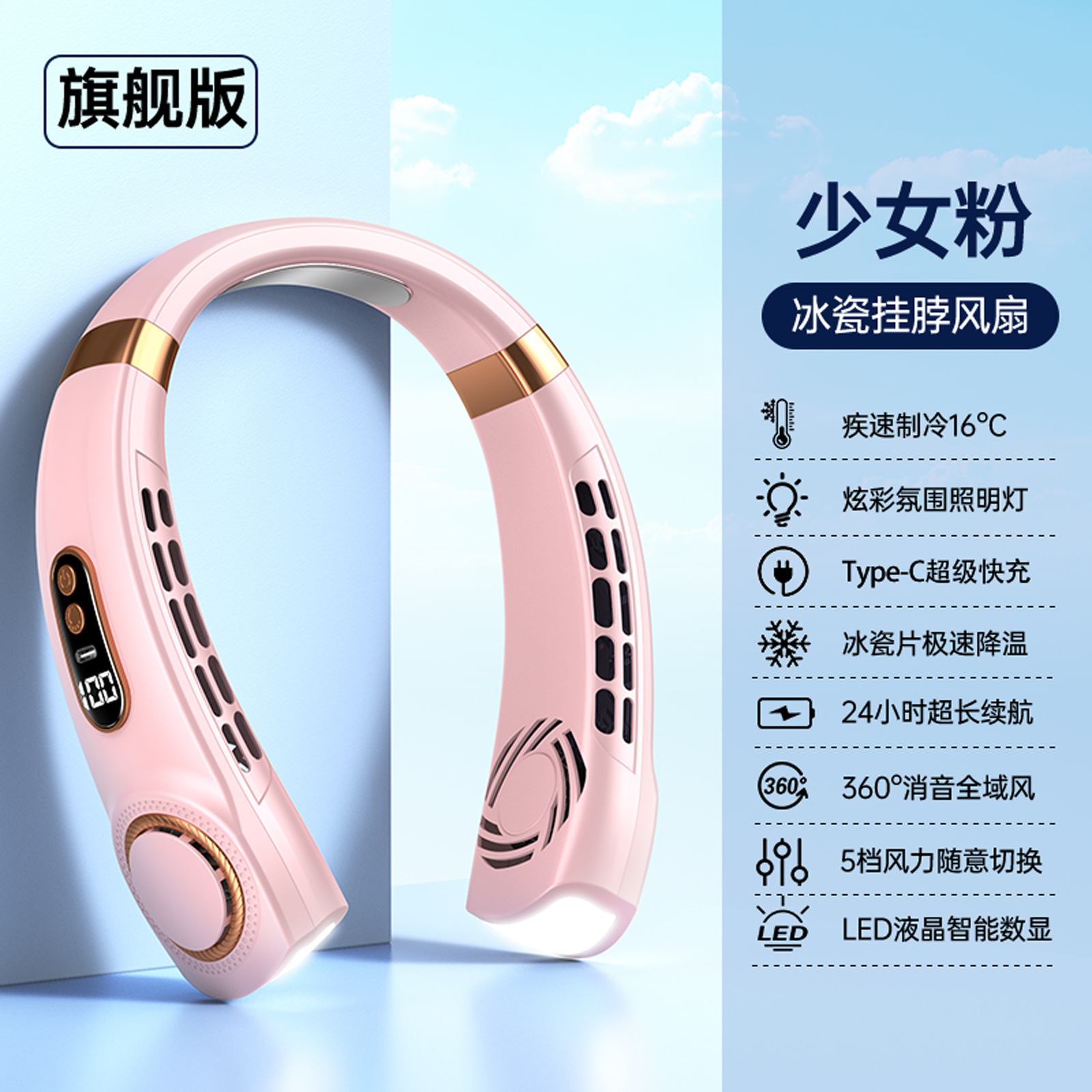 跨境新款便携式挂脖风扇USB手持静音多功能无叶随身迷你小电风扇