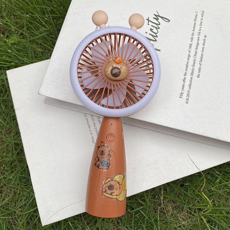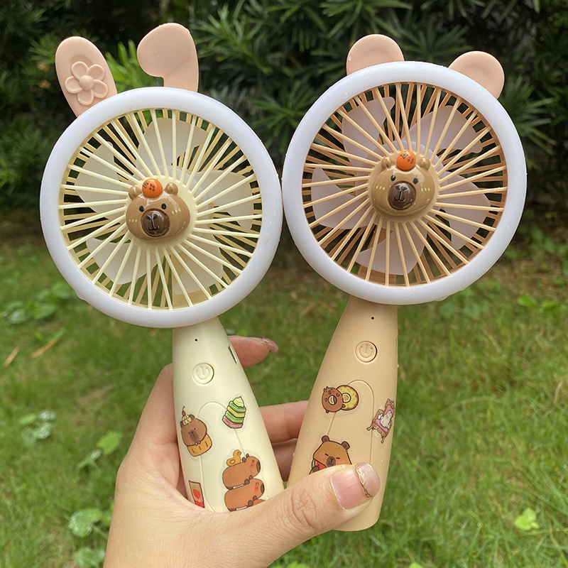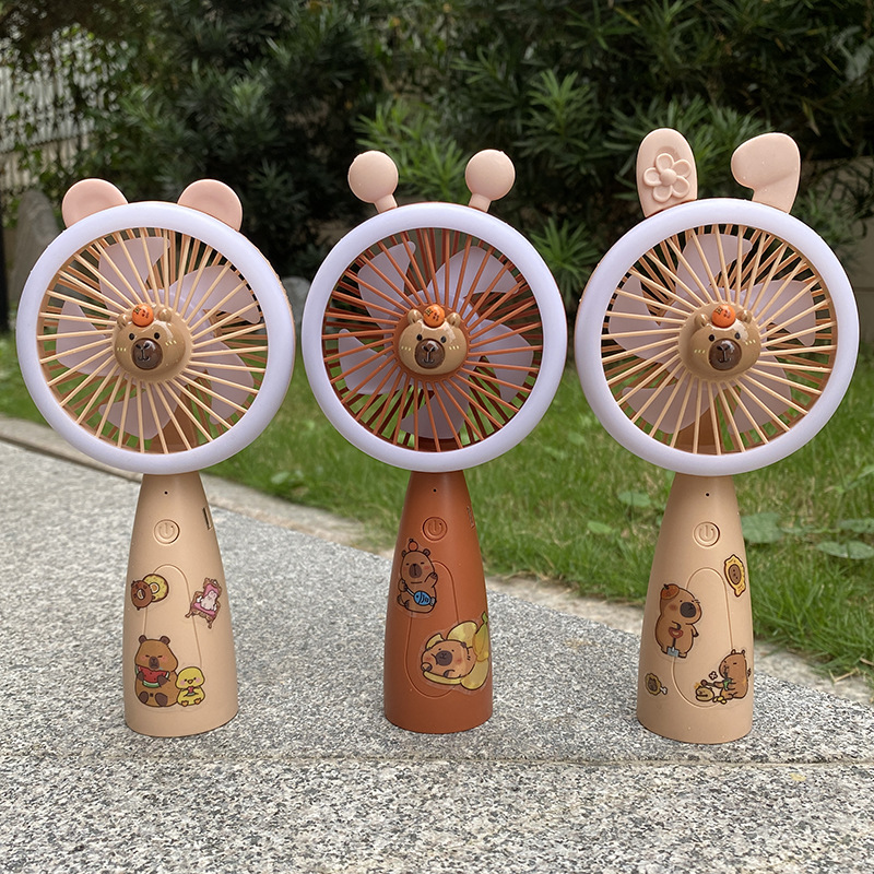 跨境卡通桌面户外带灯光便携小风扇卡皮巴拉usb充电迷你手持风扇