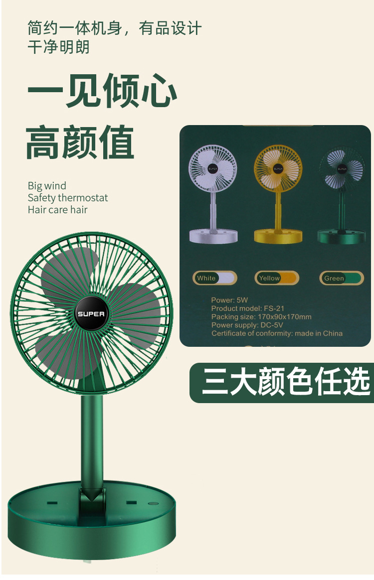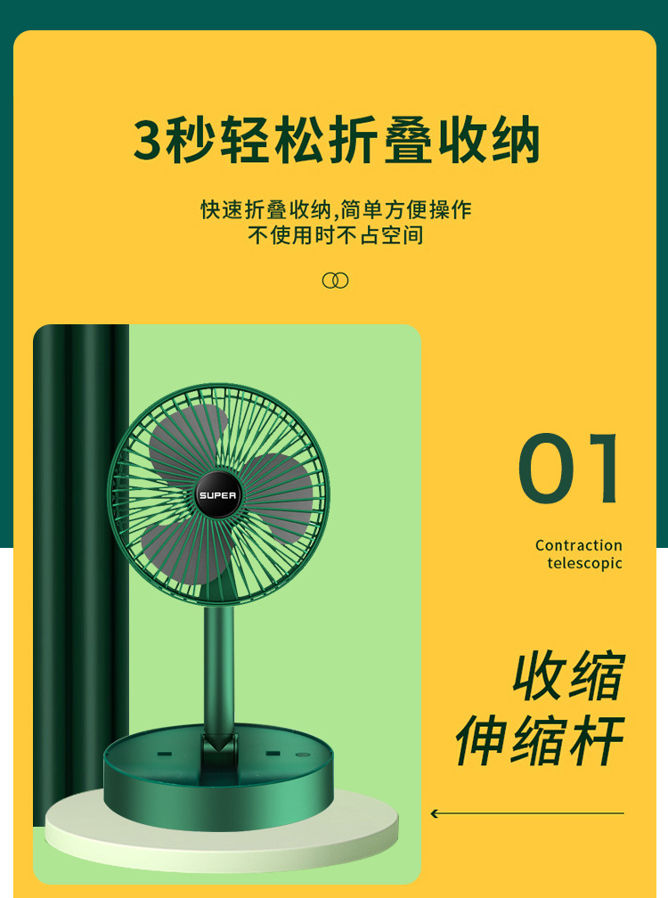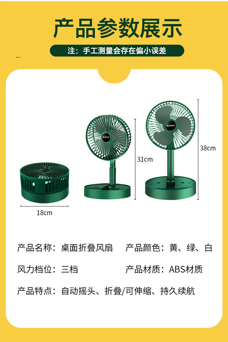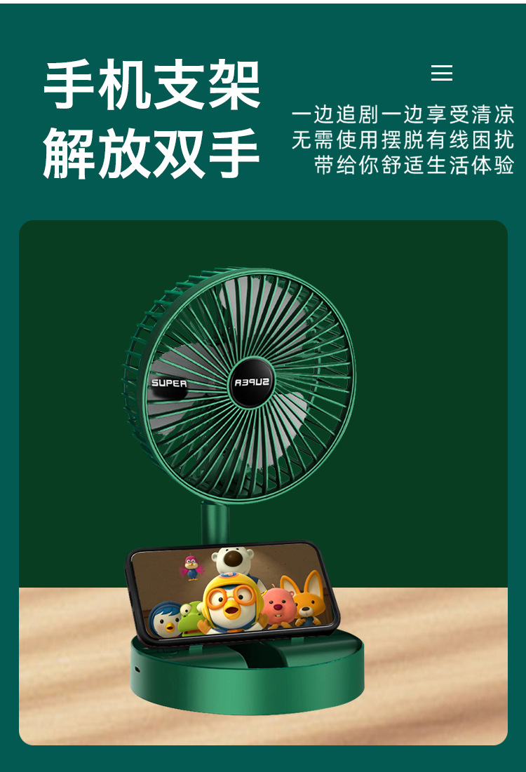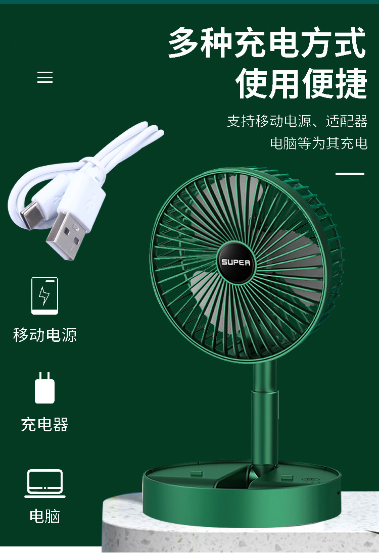 新款迷你风扇便携静音折叠小型风扇手持桌面家用电风扇USB充电款