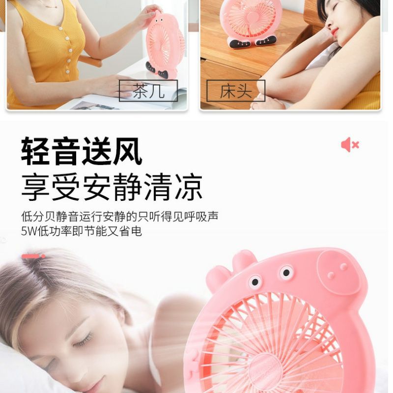 卡通电风扇学生宿舍迷你风扇家用静音办公室桌面台式床头usb
