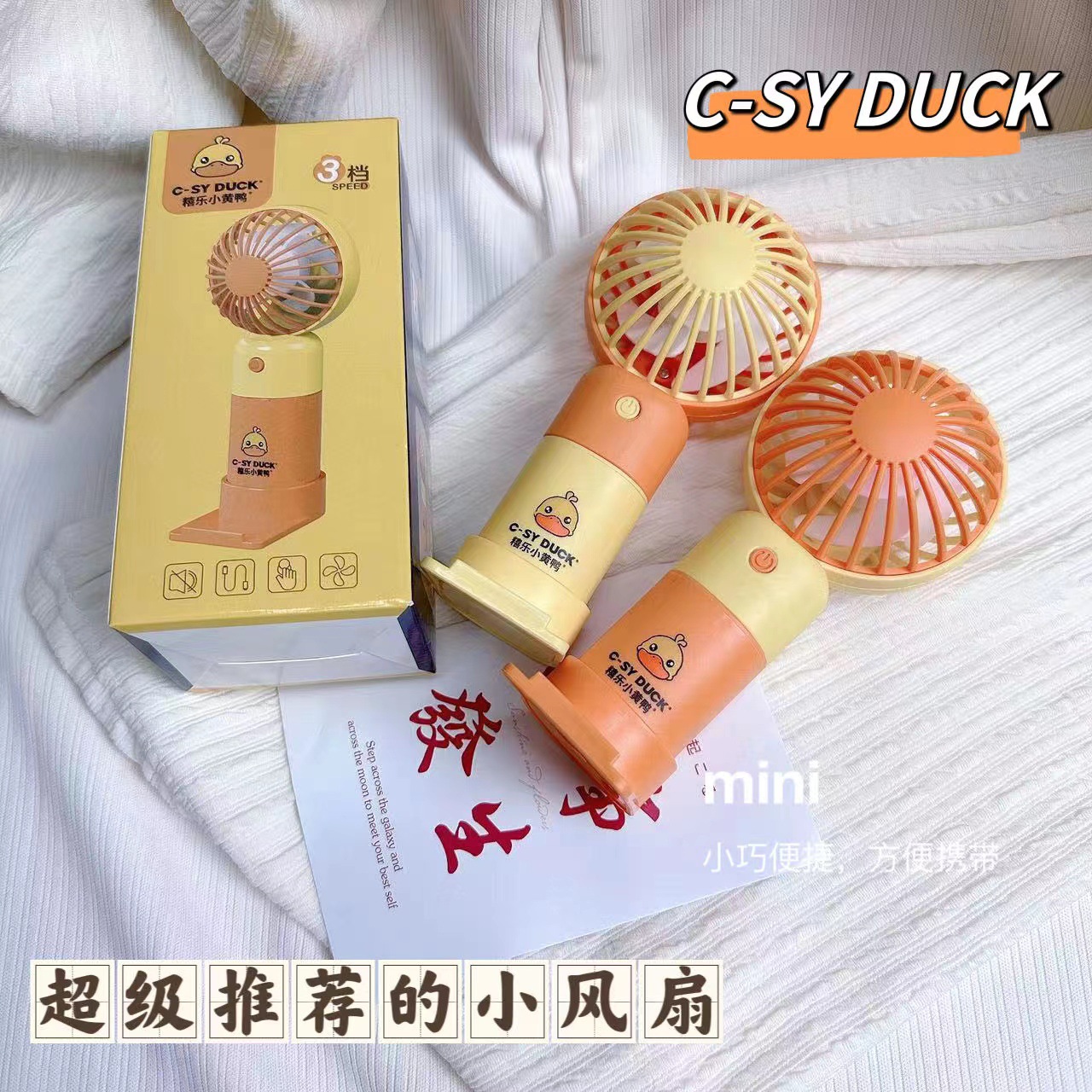 喜乐小黄鸭迷你手持充电三档小风扇夏日礼品小风扇大风力
