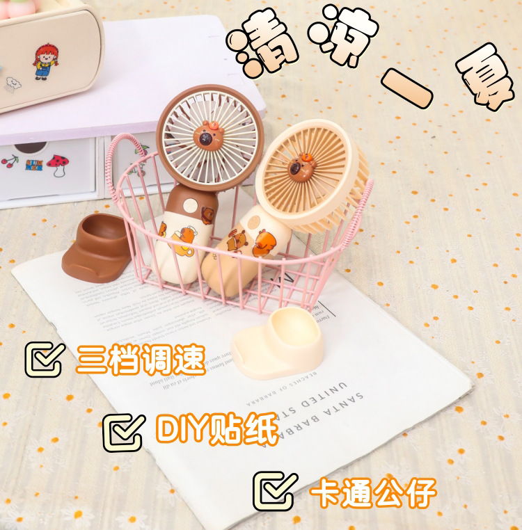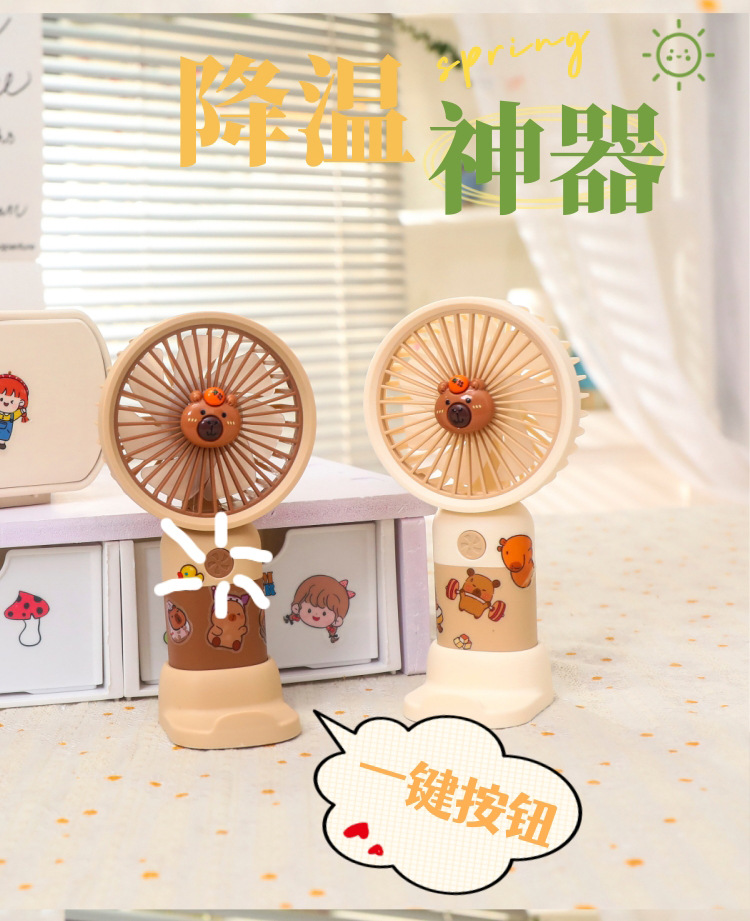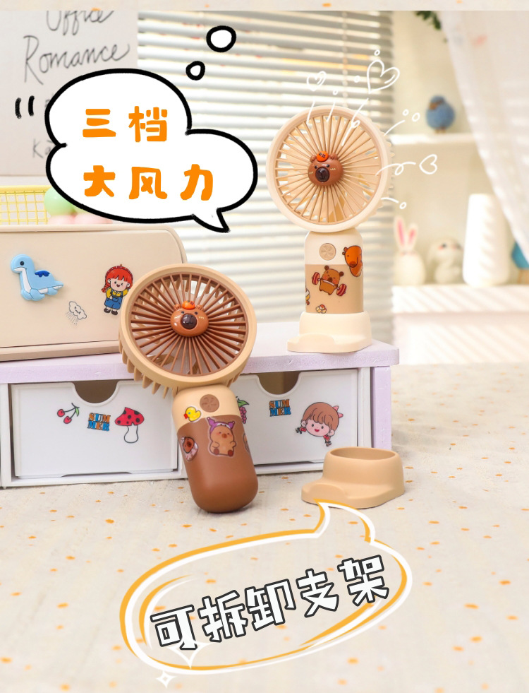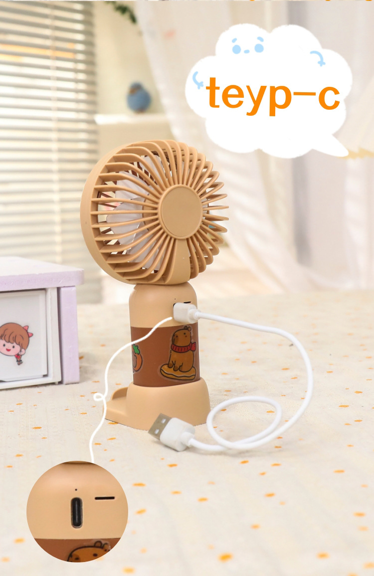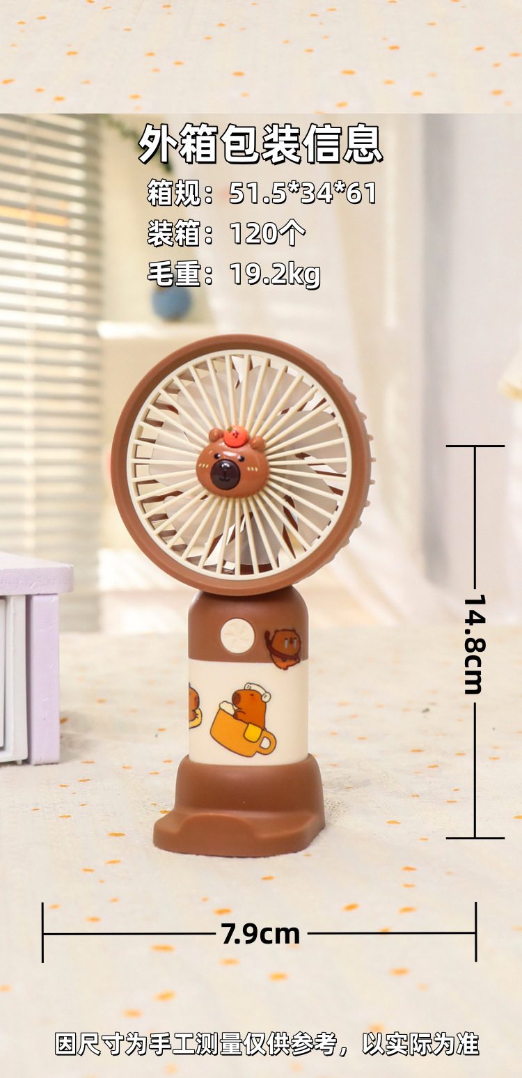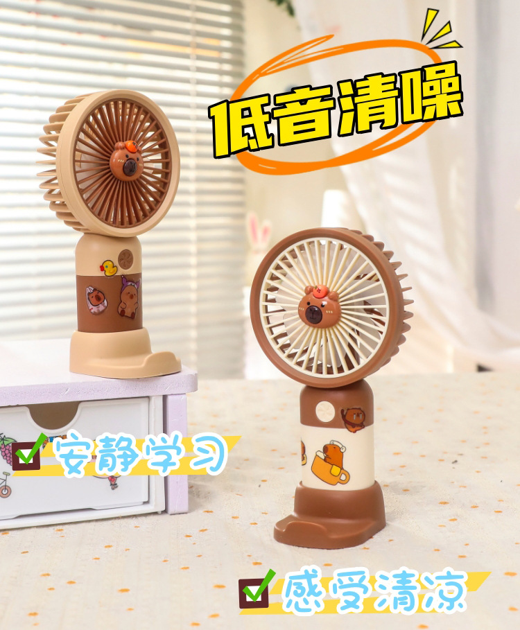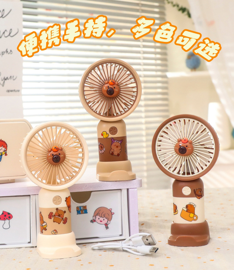 卡通水豚手持小风扇 手机支架迷你便携式USB充电可制作logo风扇
