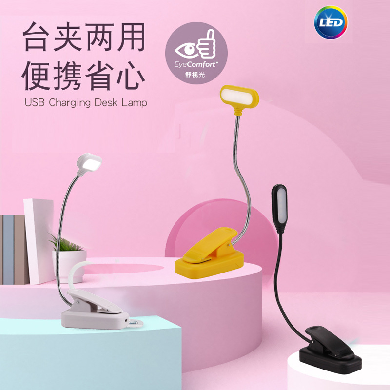 厂家批发地摊led调光软管夹子灯USB充电护眼台灯书桌阅读灯带磁铁