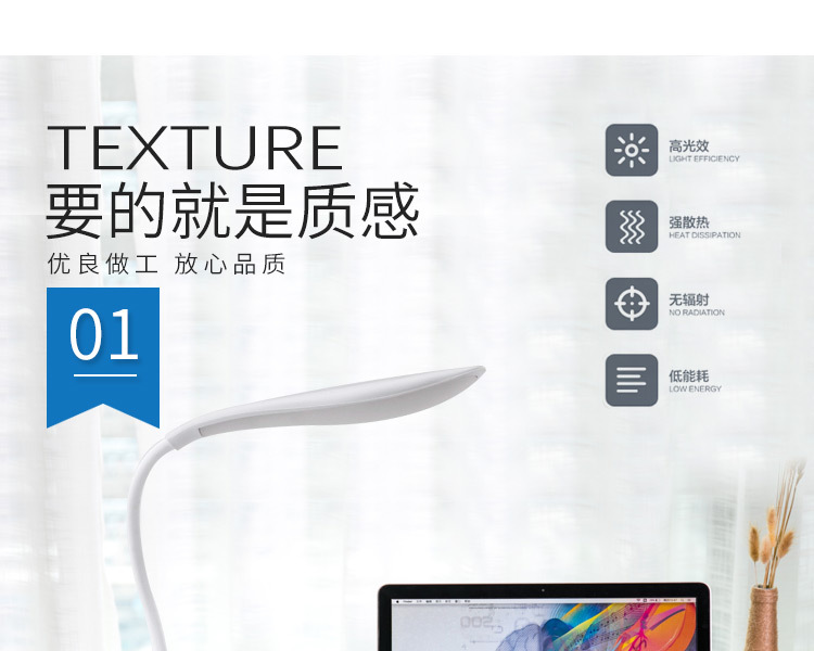 可充电式LED小台灯高亮护眼学习床头灯学生宿舍节能灯