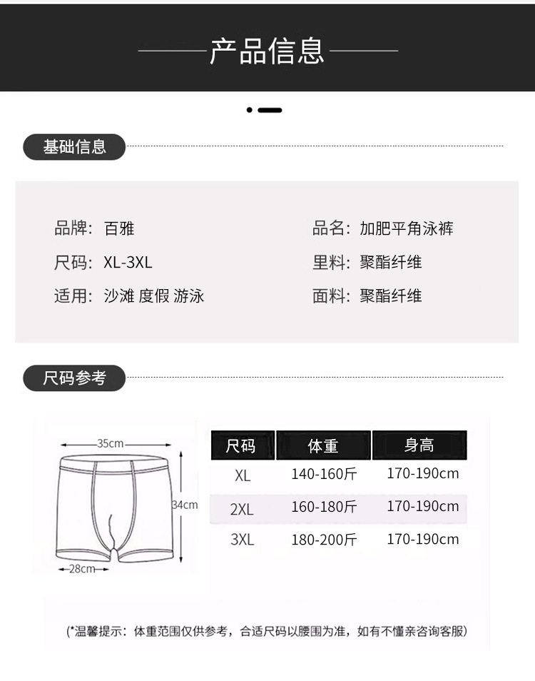 百雅爆款200斤游泳裤加大码男士泳裤温泉平角胖子加肥宽松泳裤批
